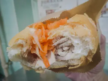 屹立渡船角多年既老字号越南法包。法包之外,其实仲有蒜蓉包、春卷等等。 试过其实都几好食既。 不过,要数呢度最出名,始终都系佢既招牌法包法包有大同细,如果食得晒,又或者两个人分,大法包视觉效果丰富好多更开心。 法包使用前先烘脆,外皮形成一层一咬即碎外壳。 法包入面包住丰富既馅料,有腩肉、扎肉、肝酱、腌萝卜等等。 口感相当丰富。 腌萝卜清爽带微辣,刚刚好平衡肉类同肝酱嘅浓郁。多年老店有多年老店既限制,环境设施用咗咁多年始终会较旧,但懂得欣赏自然会揾到好野食。