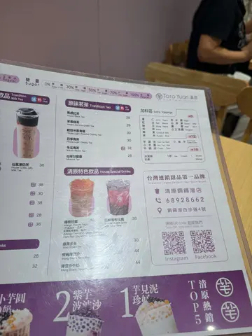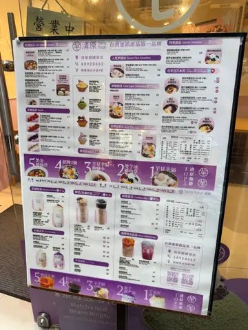 餐厅:清原地点:铜锣湾白沙道菜式:芋头甜品餐牌:人气芋头冰、蔗糖剉冰、招牌仙草冰、雪花冰、特色甜品、热汤系列、串串系列,古早豆花系列,芋头饮品、芋头冰沙、鲜奶饮品、奶香饮品、特色饮品、茶、冬季热饮等等。好多食品饮品都改左个特别既名。芋见幸福热恋中 $62呢款芋见幸福热恋中系热汤系列,材料有红豆,多色芋圆,芋头球,烟韧珍珠同西米露。个甜汤滑溜少甜,材料丰富,味道口感都唔错,热食我觉得更好味。芋见幸福 $62芋见幸福系人气芋头冰之一,基本上就系芋见幸福热恋中冻上,可以见到材料超级丰富,多到满泻咁滞。大量滑溜芋头冰配有红豆,芋头球,多色芋圆,珍珠同西米,款款材料同芋头冰都好夹,味道唔会太甜,解暑解渴一流。如假包换,食嗮见到碗底。芋见泥珍好 $62芋见泥珍好好大杯。饮落味道微甜,食落有超多烟韧珍珠同小芋圆,带有红豆同西米露,好有口感,层次丰富。今餐所有甜品饮品都好味道,好有特色,而且唔会太甜。餐厅装修唔错,干净企理。店外系一片浅紫色,好易认。…查看更多