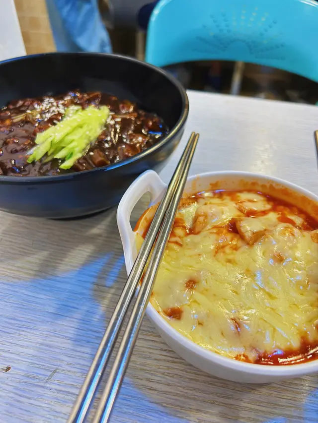 呢間韓式小店出面人龍幾長 都好多人嗌外賣 其實店面好細 入去搵到位之後就要出counter同老闆娘講要咩野食 不過留意 佢係韓國人所以儘量講no.就ok😛 呢度嘅嘢事大多為快食 不過可惜個日去到泡菜煎餅已經賣曬🥲係野食上來個陣都會有一碟醬菜 分別係豆芽同泡菜 兩種都唔係好鹹 比較開胃 我諗都係最廣為接受嘅兩種小菜👐🏻🍝炸醬麵💰55好想試下正統嘅韓式炸醬麵究竟係咩滋味 呢度嘅炸醬麵真係表面就係一層黑色嘅春醬 上面仲有D清爽嘅青瓜絲 呢個春醬應該係正宗韓國版 口味好甜 入面冇肉淨係得瓜 煮到軟軟爛爛咁 係撈勻之後可以畢起一羹麵之後kum小小春醬一齊擺入口 唔建議就咁食春醬同D瓜🤣因為真係會好膩🥟芝士辣炒年糕💰50睇到個芝士拉絲嘅高度就冇後悔 表面就又係一大層芝士 下面隱藏左好多條長年糕同魚餅 全部淹沒係辣醬入面 雖然好紅但係其實唔辣✌🏻年糕係偏硬身嘅質感 芝士就係好厚實個隻水牛芝士 單食芝士都唔錯🤣整體來講呢度少選擇 不過價錢可以接受 當試下唔同嘅韓式正統小食都唔錯嘅 好想試下佢個度嘅泡菜煎餅 應該真係好受歡迎😭📌 清溪川韓國配菜 (紅磡)紅磡湖光街1-7號聯成大廈燕安閣地下查看更多