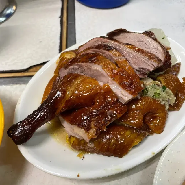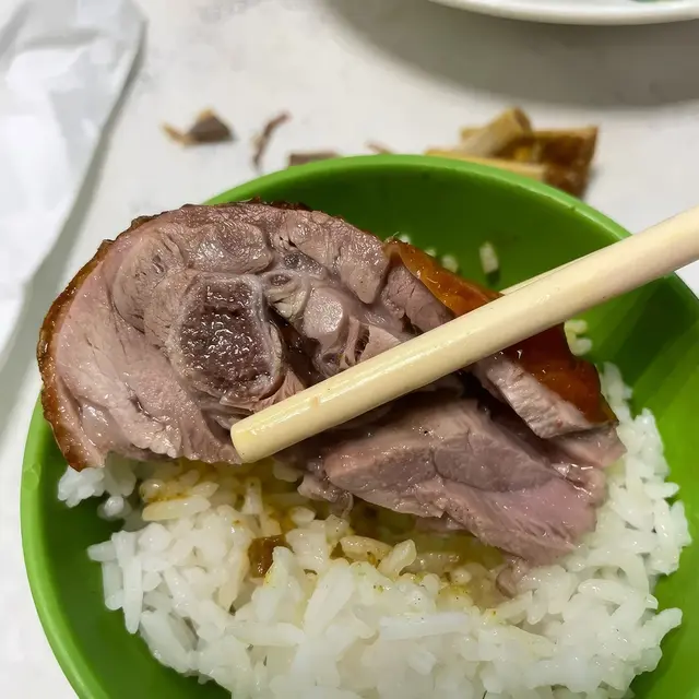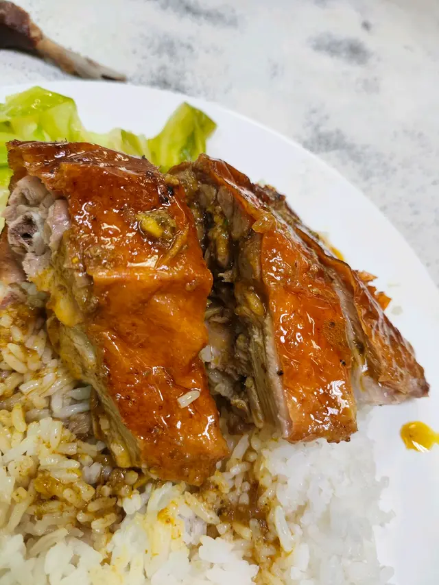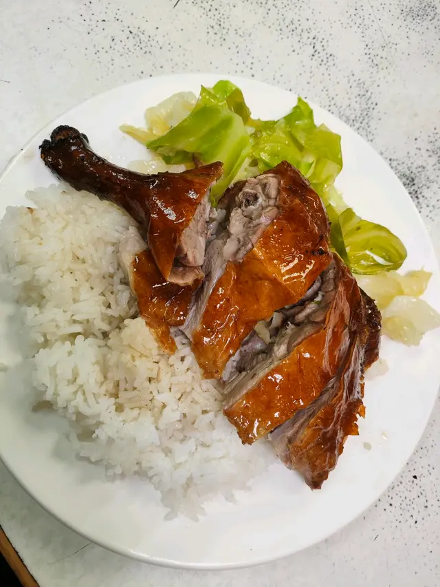 清真惠記係鵝頸熟食中心入面,環境唔算靚,但勝在地道、夠街坊feel。午市時段人流多,唔少人都係專程嚟食燒鴨、咖喱羊腩等招牌菜,枱與枱之間距離唔多,介意逼迫嘅可以考慮外賣。🦆 掛爐燒鴨髀飯– 鴨髀外皮燒得香脆,油香四溢,肉質嫩滑唔鞋口。– 加埋店家自家調製嘅鴨汁,鹹香濃郁,撈飯一流。– 鴨皮脆得嚟唔算勁爆油,有肉汁🐔 太爺雞飯– 雞肉切件厚薄適中,肉質滑嫩,冇雪味。– 醬汁偏向清淡,帶少少薑蔥香,唔會搶味。– 雖然唔係最出名嗰款,但作為配搭都幾穩陣,雖然係熟食中心,但出品有水準,燒鴨髀飯絕對係招牌之選,太爺雞飯就屬於穩陣之選。#清真惠記 #灣仔熟食中心 #燒鴨髀飯 #太爺雞飯 #地道燒味 #香港食評 查看更多