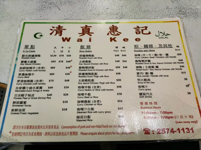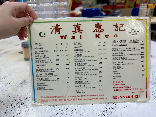 約了友人食Lunch,之前睇YT介紹清真惠記,個燒鴨脾及柚皮好吸引即想試下,位於鵝頸街市位置冇難度。因我地就到11:30提早去到果刻唔算太多人,之後就越來越人(這當然)。餐牌,都係食最出名果幾樣,可惜果日冇柚皮...。等食中都乳到幾多街坊熟客幫襯。掛爐燒鴨肶飯,$58,賣相普通(有件甩左皮),份量適中,鴨皮燒得脆口,肉嫩香口又多汁,美味!但因似乎唔係燒得好平均,唔係件件都咁好食,部份係唔夠皮脆但肉質都係幾好味。咖喱羊飯(含骨),$58,友人叫的,試左點,分閞汁上呢下幾好,咖喱味香料味較重,味道濃郁但唔算好辣,羊肉大件,肉質軟腍夠入味,唔太有羶味果下不俗。食物有水準,呢個價幾抵食,態度正常,可惜冇柚皮,下再有機再食。灣仔寶靈頓道21號鵝頸街市1樓鵝頸熟食中心5號舖查看更多