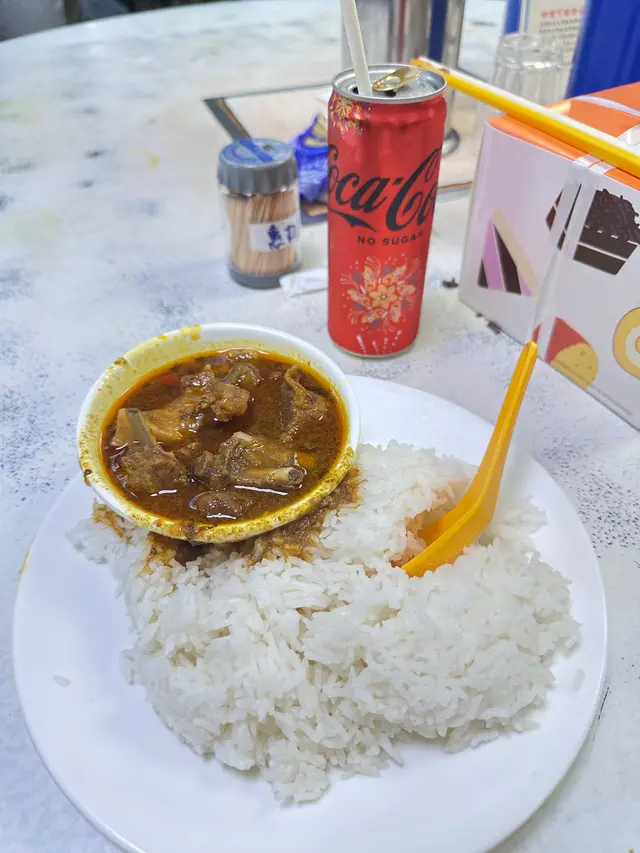 呢間食咗十幾年,以前公司距離約十分鐘步程,每個星期總要食一次,其貌不揚但絕對係 THE BEST IN TOWN(沒有之一)。如果早嚟,佢舊炸過嘅薯仔個外皮炸漿重係脆脆地,羊入晒味,冇得輸,特別係嗰一千零一舊筒骨入面嘅羊髓!最緊要最緊要,當然係個咖哩,香濃味重,記得有期《飲食男女》訪問過佢哋,鋪頭老闆以前殖民地時代喺警局煮飯畀印度籍警察,所以咖喱風味係偏印度風格,頭盔,希望冇記錯今次星期六三點去到差唔多二十個人排緊隊叫外賣,可能真係太迫太多人,有時會聽到店員佢哋講嘢燥燥地,不過都係呢度特色嚟嘅,同埋熟食中心/大排檔,執枱冇咁快,枱面有咖哩漬,坐得迫,就預咗,介意者留意,自行衡量!查看更多