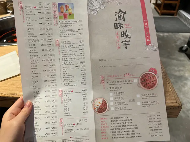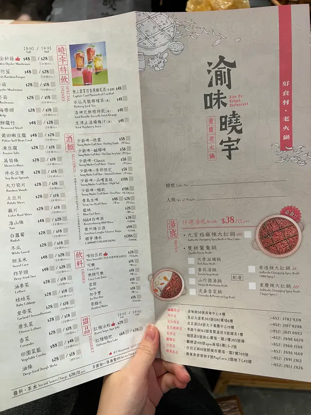 渝味曉宇重慶老火鍋 (太子集團中心) (尖沙咀) 网址: https://s.openrice.com/QrLS04zM3W0 地址: 香港尖沙咀北京道12A號太子集團中心19樓 电话: +852 36210893