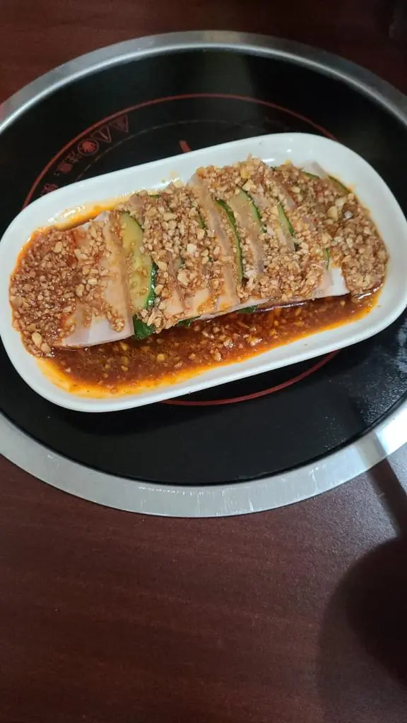 人唔多,唔洗點等位味道正常OK普通一餐飯咁老闆幾好,會主動同我地傾計,閒話家常,不過呢樣就睇你自己like 唔like 啦,有D人鐘意靜靜地二人世界,又有D人覺得識多個人無壞1. 蒜泥白肉 $48- 蒜泥白肉惹味十足,一點都不像是在吃肥肉, 每一口都是彈牙的膠質感,配白飯食一流!2. 涼伴冷麵 $33- 天氣熱食凍野就岩哂﹗啲冷麵 好似冰過咁,好好吃,迅速解熱﹗