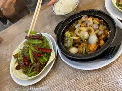 Stopped by here after a grueling night of squash, and the quick cheap meals were not too shabby. Though we had a party of 5, 4 dinner sets were able to keep us all full and satisfied. The restaurant had a packed and busy feeling, which didn't made our visit too comfortable; The wooden bench seats didn't help much either, and the weird paintings around the establishment felt - off (to say the least). Other than that, we were seated right next to the kitchen, so we had first hand witness to the not so sightly views of the dirty kitchen behind us. The staff were nice to us at least, but I could tell they were running out of patience once they approached us and realized we haven't fully decided our order yet.As mentioned, the food was quite pleasant actually. We were given a decent serving of appetizers and rice, and all the dishes were very satisfying and well seasoned. My personal favorite dish was the beef and stir fried beans, which complemented my plain rice perfectly. All the dishes were only around $60-$70 too, which was surprisingly good and cheap for Hong Kong standards, especially on Hong Kong island. Definitely a rare gem that I will continue to visit over time.…查看更多