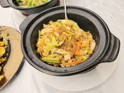 粉丝幼身,炒得干爽香口,鲜香粉味,少有一次过吃到3种不同口味的虾,每只虾同虾米弹滑爽脆,特别浓香鲜虾鲜味大澳虾干唐生菜煲