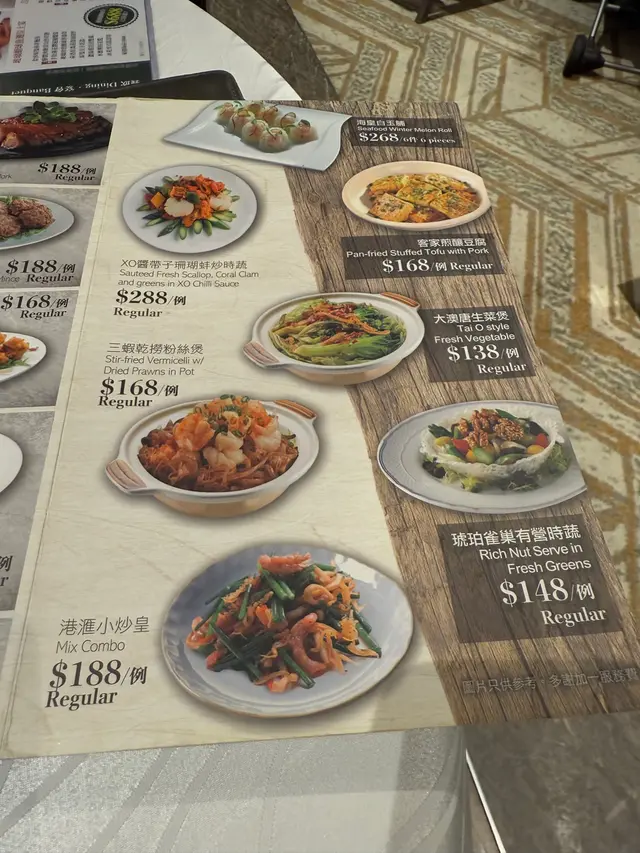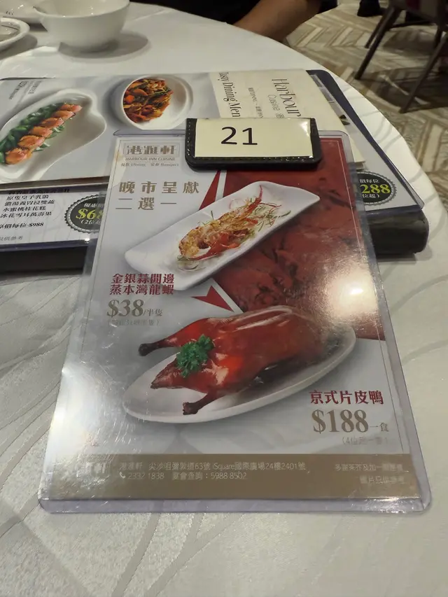 今晚放工約了朋友在尖沙咀食晚飯, 預祝中秋, 特別揀了一間近地鐵站的酒家. 港滙軒, 酒家門面闊, 裝潢亮麗. 裝潢甚有氣派, 燈飾設計靚, 面積大, 樓底高,重有 270 度維港海景, 食飯看美景, 賞心樂事.大廳設有四人圓枱, 亦有十多人的大圓枱, 氣氛好好.廳堂高雅大方, 適合朋友, 家庭飯局聚會, 喜宴聯歡. 部長送來餐牌, 大家看看, 有魚翅, 鮑魚, 燒味, 海鮮, 小菜, 選擇無難度. 晚飯有散叫, 亦都有套餐, 豐儉由人.招呼親切, 先開茶及送上花生小食, 我們點了鐵觀音茶, 水滾茶香.今日有晚飯呈獻: 御廚組合 $488, 有龍蝦半隻, 燒鵝或潮式滷水鵝, 好岩食啊.先送上 金銀蒜開邊蒸本龍蝦, 一隻, 每位半隻. 龍蝦新鮮, 厚肉香甜, 龍蝦肉質爽口彈牙, 蒜香好味. 真不錯.潮式滷水鵝, 伴有 滷水豆腐. 滷水鵝色澤鮮明, 肥瘦適中, 油潤軟滑. 用上正宗潮式古法鹵水汁烹煮, 鵝肉好入味, 肉質油脂感都豐富, 嫩滑可口. 鹵水香料咸度適中, 調味好好.鵝肉去骨好入味. 又稔又好食.碟底有鹵豆腐, 同樣鹵得入味, 又滑又有豆香. 清蒸東升斑一條, 熱騰騰上, 好鮮呀. 時間蒸得岩岩好, 魚肉嫩滑有彈性. 肉質鮮美, 充滿魚味但又不會腥, 配以豉油熟油綻的蔥花, 更香, 更美味.絲苗白飯, 用上鍋仔蒸飯, 粒粒分明, 更有飯香, 伴上東升斑一起吃, 好滋味.餐後送甜品, 蓮子紅豆沙, 每人一碗. 紅豆味香濃, 不太甜, 好滿意.酒家環境舒適, 食物價錢公道, 烹調很好! 店員服務態度認真, 值得再來.…查看更多