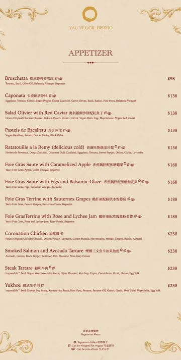 在西环一个几隐蔽的地方,但入门口已经觉得好梦幻。悦耳的jazz music, 好靓的装潢😍 行落一层,高高的楼底放了棵高高的🎄,好靓呢☺️ 周围好多艺术品画作,好舒服的环境~ 可惜可能位置真系唔热闹,无乜人,呢度做埋呢个2023 年1月就要结业了🥲 不过,靓仔哥哥话会再揾地方的,我哋就等下之后再见吧😃因为,呢度真系想再来,用素煮西式菜式已经不常见,而且仲要好好食!真系好好食!而且仲有好多款菜式未试呢😋 这夜和寿星女被浪漫包围好好享受美食🥰今晚叫了三文鱼牛油果他他,配上一块外脆内软的面包来食,好滋味🤤香煎鹅肝配焦糖苹果很像样。我本身唔食鹅肝的,但呢个是素,食多多也不怕😛普罗旺斯炖菜成日睇D外国片,人地开home party都会有的一个main course~ 用唔同种类的瓜来做,好惹味又好健康😙 食食下觉得太好食,想叫多样,追加了鞑靼牛肉🤣 配墨西哥脆片好香口,食唔停口但有D热气🙈法式千层酥嚟呢个甜品前发生了个笑死人的小插曲😂 好彩最后都无坏了事🤭 千层酥意想不到的松脆,个吉士无奶无油,都一样咁好食😋😋😋 真系好难忘!…查看更多