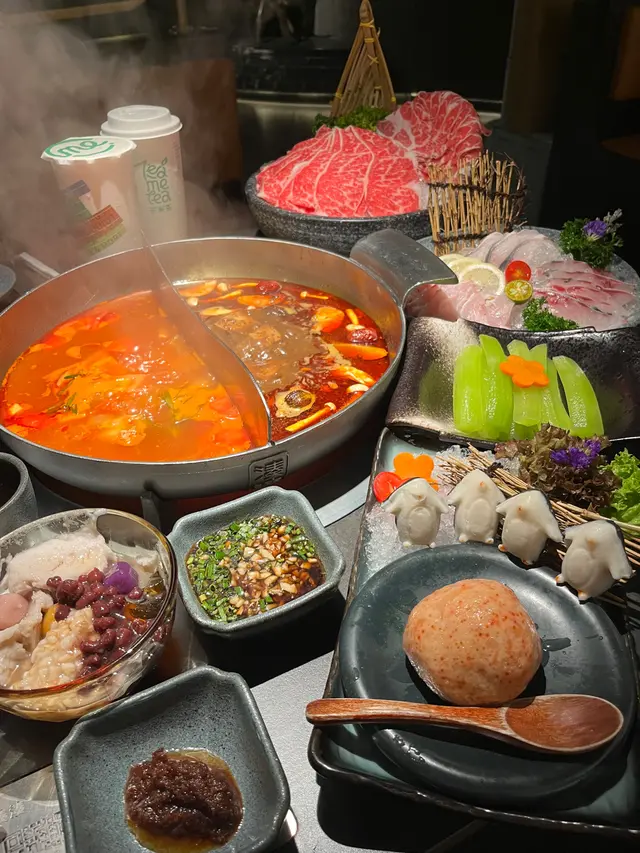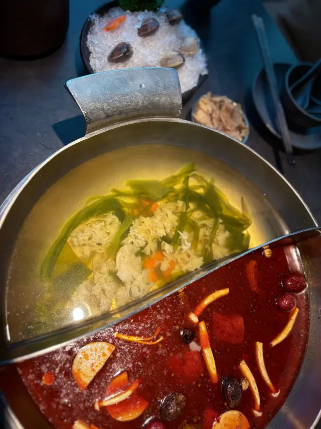 Airside咁多餐廳試極都未試哂6F依間火煱又係近期心心念念既一間😆🫕 臺式麻辣鍋 vs 昆布文蛤鰹魚鍋經典雙拼 麻辣夠勁 仲有鴨血 好惹味比較溫和就有日式和風鰹魚 味道好出6粒文蛤好大粒飽滿 🐟 至尊龍躉鮮活魚三品 $288平時打邊爐都少食魚 見依個combo幾抵同份量都算多 (包括沙巴龍躉、脆肉鯇同活鱔 各有六片左右)每款口感各有特色 先生鍾意沙巴龍躉 肉質滑嫩我就鍾意活鱔 好鮮味 味道好signature脆肉鯇夠爽 重點全部都好新鮮一次可試哂三款口感太正啦 🐧 企鵝賞月 $108cute爆企鵝原來係墨丸 好彈牙中間粒🌕就係蟹籽蝦滑加左蟹籽卜卜口感幾特別🥬 萵筍 $38浸落鰹魚湯索哂味 好正🙌🏻健康值+1🤣🥣 自助區除左大量醬料mix & match仲有少量前菜同甜品區係台式豆花/仙草碗呀‼️仲有好多toppings可以加大推綿滑芋泥🫶🏻 唔少得仲有芋圓 紅豆🫘茶凍等等🧋大紅袍奶茶 / 紅韻蘋果桃 飲品竟然係外帶茶飲杯👍🏻最岩邊爐長途賽 解膩又解渴臨走見到門口有2/4人餐食物款式齊 CP值唔低👍🏻 平均每人三百幾蚊有交易🤝…查看更多