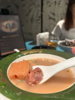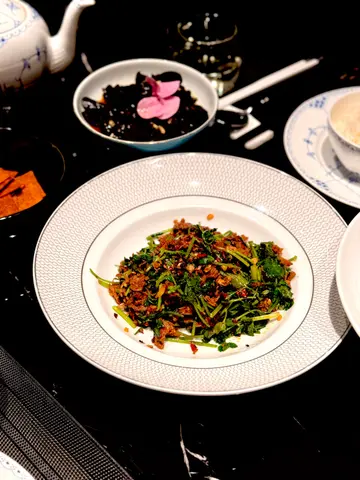 今日再次邀请工作伙伴,在湾仔某高级酒店内享用湖南风味的午市湘菜套餐。餐厅以黑、白、灰为主色调,设计简约大气而不失格调,空间宁静舒适,设有包厢和挂帘,极具私密性。这次的商务午市套餐($398 / 两位),以湖南家常小炒为主轴,选材精致不铺张,火候讲究,展现出湘菜独有的层次与风味。我们的搭配如下:- 清茶:陈年普洱,入喉温顺- 前菜:烧椒皮蛋 香辣烧椒与滑嫩皮蛋一同桩碎,香气扑鼻,辣而不燥,开胃十足。- 汤品:筒子骨炖湖藕汤 清润浓郁,湖藕松软绵密,滋味醇厚。- 主菜:18秒牛肉 采用湖南经典「快炒」手法,牛肉片在大火中迅速翻炒十八秒,保持鲜嫩多汁,搭配芫荽香气扑鼻,口感爽滑,香辣有致。- 主菜:锦绣红鹤笋 红鹤笋清脆爽口,腊肉粒咸香浓郁,青椒微辣提味。- 蔬菜:清炒椰菜,清甜爽脆- 主食:小米青稞饼 外酥内糯,口感朴实。- 甜品:银耳莲子羹 滋润养颜,银耳软糯,莲子绵密。…查看更多