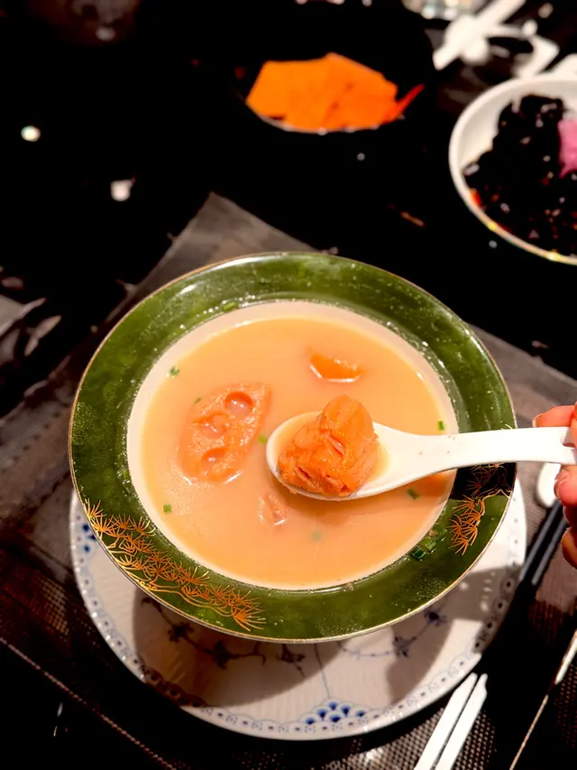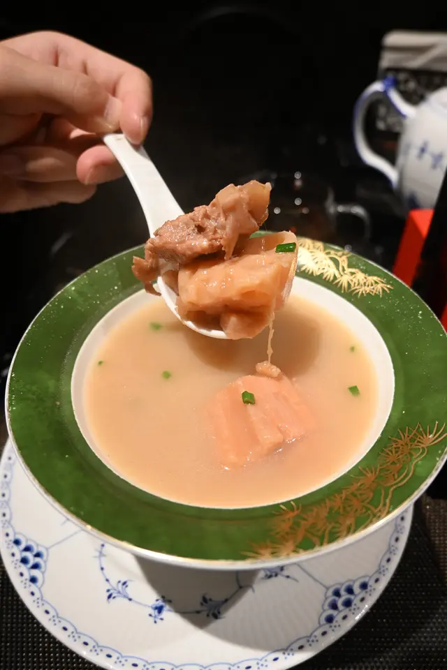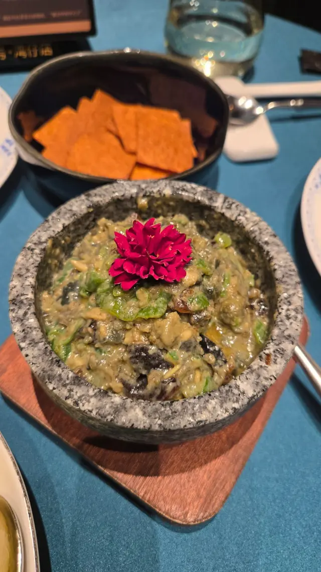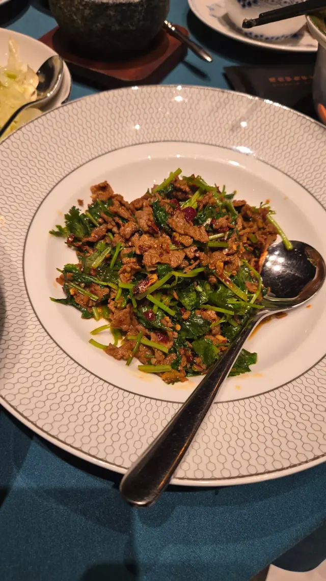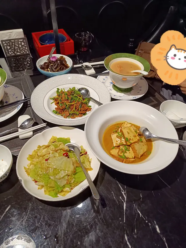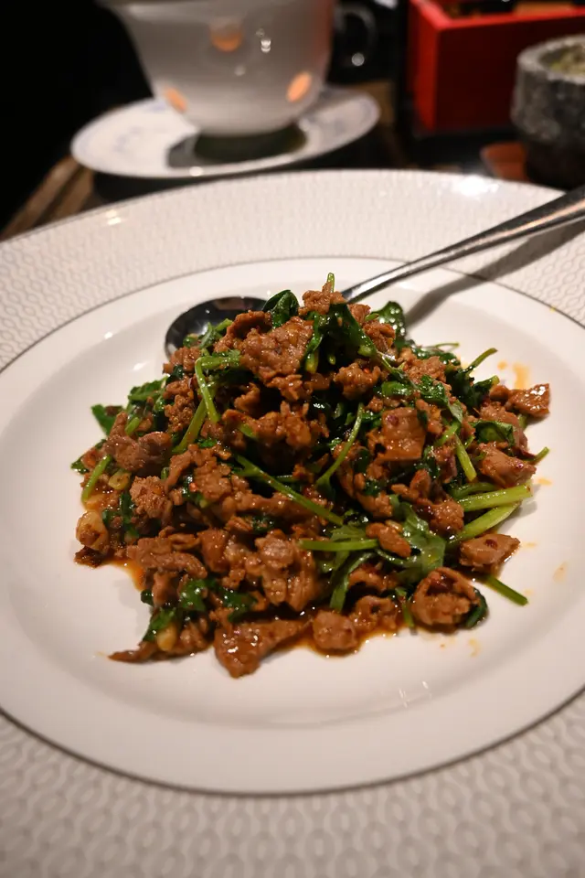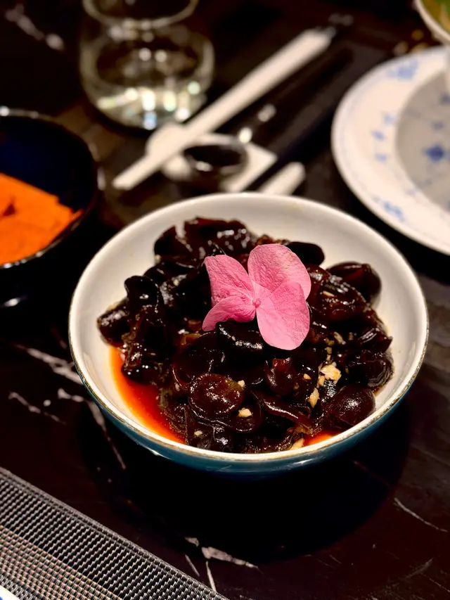 今日再次邀請工作夥伴,在灣仔某高級酒店內享用湖南風味的午市湘菜套餐。餐廳以黑、白、灰為主色調,設計簡約大氣而不失格調,空間寧靜舒適,設有包廂和掛簾,極具私密性。這次的商務午市套餐($398 / 兩位),以湖南家常小炒為主軸,選材精緻不鋪張,火候講究,展現出湘菜獨有的層次與風味。我們的搭配如下:- 清茶:陳年普洱,入喉溫順- 前菜:燒椒皮蛋 香辣燒椒與滑嫩皮蛋一同樁碎,香氣撲鼻,辣而不燥,開胃十足。- 湯品:筒子骨燉湖藕湯 清潤濃郁,湖藕鬆軟綿密,滋味醇厚。- 主菜:18秒牛肉 採用湖南經典「快炒」手法,牛肉片在大火中迅速翻炒十八秒,保持鮮嫩多汁,搭配芫荽香氣撲鼻,口感爽滑,香辣有致。- 主菜:錦繡紅鶴筍 紅鶴筍清脆爽口,臘肉粒鹹香濃郁,青椒微辣提味。- 蔬菜:清炒椰菜,清甜爽脆- 主食:小米青稞餅 外酥內糯,口感樸實。- 甜品:銀耳蓮子羹 滋潤養顏,銀耳軟糯,蓮子綿密。…查看更多