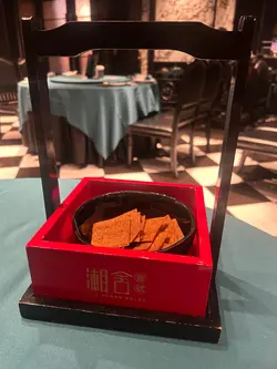 餐廳位於酒店一樓,裝修豪華,有唔少廂房同卡位,私隱度高,幾適合嚟見客Business Lunch☺️一坐低先有個小食紅薯片,好香紅棗味而且好脆口,少少厚咬落有口感👍🏻非常特別😆🍽️湘舍商務午餐套餐 ($398/2位)燒椒皮蛋🫑燒椒香辣開胃,散發住微微嘅煙燻香氣,皮蛋味道濃郁,一食就唔想停😋河北蓮藕排骨湯🥣蓮藕口感粉糯有口感,食得出新鮮,排骨煲到肉質軟爛又入味,飲落好暖胃。而且有個火爐heat住,飲到尾都仲係熱辣辣😆十八秒牛肉🐮十八秒快炒牛肉,鍋氣十足,配上芫荽,色香味俱全👍🏻牛肉嫩滑,香辣過癮,送飯一流🍚砂鍋虎皮豆腐🫕豆腐外脆內軟,獨特嘅醬汁突顯黃豆嘅清香,每一啖都順滑可口😋小米青稞餅🫓呢個係第一次食,餅入邊包咗小米,煙煙韌韌,非常有特色😚清炒時蔬🥬蔬菜清爽鮮甜,份量十足✨銀耳蓮子羹🧉超滋補特別係俾女仔🥰最後由一個清甜嘅糖水嚟總結呢個午餐,簡直係大滿足😌查看更多
