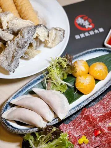 私房菜间唔时都会食 估唔到火锅都有私房菜😮😮🍴鱼皮响铃双拼 $108平时好适合浸落汤嘅呢两款火锅配料餐厅建议即食 脆卜卜💥可以做餐前小食🍴花胶鸡煲 $388平时汤底多数食辣 今次试个滋补养颜嘅花胶鸡🐥入面好足料 汤底除咗有花胶同鸡块 仲加入金华火腿 圆肉 杞子👐🏻鸡块煲极都保持嫩滑👏🏻汤底略带金华火腿嘅咸香🍴顶级本地手切骟牯牛 $428肉味浓郁🐮厚薄适中 有嚼口但不会韧🍴双拼丸(虾丸 & 牛丸) $138自家制大大粒 牛丸肉质弹牙🐮虾丸足料超爽口🦐🍴双拼黑豚饺 &奶皇包黑豚饺薄皮包住满满馅料 咬落去仍然保持住肉汁💥奶皇包几惊喜😳估唔到奶黄包都可以做火锅配料皮嘅口感几弹牙烟韧 咬开真系同流心奶皇包一样!🤓最后仲饮番啖酸梅汤($76/2杯)解解腻总结餐厅食材汤底都几高质👐🏻消费满$1000可免开瓶费🍾打边炉想食好啲都系唔错嘅选择不过餐厅入座限时90分钟 ⏰以火锅嚟讲可能会有少少赶🤏🏻