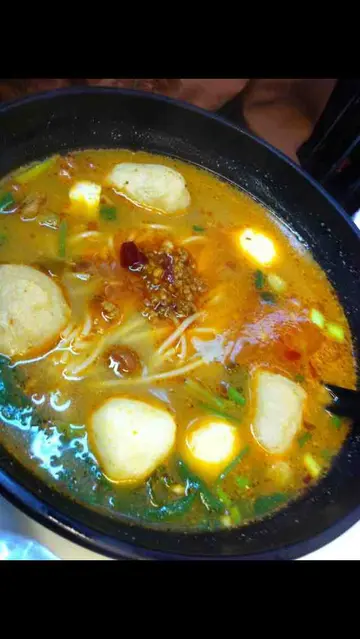 唔系好食得出系唔系牛,很干身0肉汁,但味道是合格的(香料分),再过一会面送到了,这间的红薯粉特别的强韧,如果不是用门牙不停锯断的话(用其他牙齿系咬唔断的),可能有机会哽亲,小朋友就千奇唔好食,夹唔断的,食得颇辛苦,但其实本身是有益又好吃的,只系这间真系好韧,生菜很翠绿,包心鱼丸还以为会爆酱,所以小心翼翼地吃,结果没有,鱼丸里面包了牛肉色的肉粒,味道很鲜,好吃,汤底都很鲜甜,我至少喝了半碗