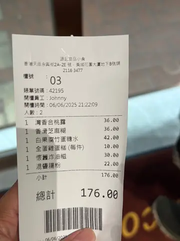 下班与同事晚饭后再找下一场,吃甜品!天后这边除了食肆多,中式甜品店真的要试试源记,这里的糖水保留传统制法,别有风味。这里的招牌糖水,桑寄生莲子蛋茶$48,必须要有鸡蛋,这是慢煮的,咬下蛋白非常软滑,而蛋黄不会太干,吸收桑寄生茶味道,微微香甜,口感的确与其他甜品店不同,是必吃的!手工莲子份量都非常多,煮得够软身,没有苦涩味,真的是人手逐粒去芯。夏天喝这个糖水,可以去湿养颜。清香合桃露$36,入口香得不得了,口感超幼滑,味道又不会太甜,非常好味,简直是味蕾的享受!仍然保留传统石磨做法,推介要试!香滑芝麻糊$36,味道微甜,黑芝麻香而不苦,炒得火喉适中呢!因为石磨的关系,芝麻磨得幼细均匀,特别的滑!由于明天不用上班,同事们又坐得舒适,再来两个小食边吃边谈天。混酱肠粉22,同事说很久没有吃肠粉了,不加豉油的,甜酱、麻酱、少量辣酱混合,已经是传统美食,肠粉滑嘟嘟过口瘾。炸一口鸡蛋糕$26,这里的鸡蛋糕是传统配方,只用鸡蛋、面粉、糖制造,鸡蛋味香,蛋糕松软,切成一口一件再油炸,跟吃西多士一样做法,洒上朱古力酱,变成特色鸡蛋糕小吃,而且价钱很实惠呢!同事们都赞这里的传统中式糖水,吃过便印象难忘,一定会再光顾。…查看更多