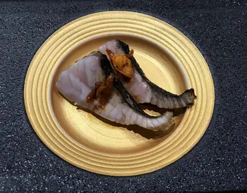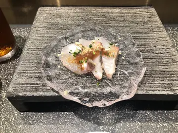 朋友约食omakase, 今次拣左铜锣湾嘅滝寿司打头阵,好靓既一碟前菜有蔬菜,螺,虾等等,汁煮黑豆虽然唔起眼,但系大大粒,好甜!鲈鱼鱼既鲜味好清新食咗刺身先,试清楚鱼本身嘅味道跟住食埋件寿司 上面既乌鱼子有种咸香味,令鱼肉更甜❤️𠝹左花,口感更有层次石垣贝依粒肥嘟嘟,缩埋一旧嘅石垣贝肥美又鲜甜😋😋有柔软,又有爽劲一面!北海道帆立贝中间夹左蒸过既紫海胆海胆味道浓厚,同寿司饭融洽,令每粒饭都好甜😌😌足以令人内心尖叫嘅海胆终于出现!今次师傅准备咗:北海道白海胆同匙羹仔慢慢品尝🥰🥰海胆温度控制得非常好!凉凉触感,口感creamy👍🏼深海池鱼有三片🥰正正子师傅加咗无花果汁,芝麻碎卖相闪令令咁😋😋鱼肉厚薄岩岩好,质地好滑,软身,带鱼油香味成餐饭师傅都冇停过手,好似睇紧表演咁,认真做野既男人果然系吸引😎😎野生剑鱼仲要经过熟成处理,鱼味更特出,又够晒矜贵😎师傅首先用少少酱汁,将鱼肉腌制一阵,再用火枪烧呀烧,香气喷鼻!点知仲未够,再加埋橡木做烟薰!真系齿颊留香!鱼肉上面仲放咗少少鱼子酱入口即化❤️❤️花竹鱼寿司师傅熟练咁样去除虾壳,挑肠先食虾尾,肉比较结实虾头就精彩!虾膏味好突出 虽然一分为二😋😋但都放唔晒入口备长炭 䲠鱼巧妙咁配上干葱蒜片同柔软既鱼肉一齐食,口感层次丰富左,另外不得不提嘅系鱼皮部份,都好好食,好滑呀😆😆去到尾声,饮咗碗超浓郁海鲜汤之后,食埋甜品,就真系超级满足啦😎整体都算非常享受❤️❤️…查看更多