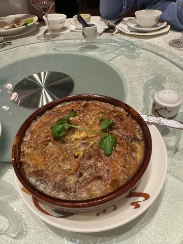 首先,酒店位置方便,容易揾,如搭地铁在会展站下车出B3 出口好快就可以到达.先由头盘讲起:)口味:点左海蜇头,热素鹅,香麻贡菜,味道正常,没什么特别.口味:叫了西班牙黑豚肉叉烧,因本人系唔食猪肉,所以评价唔到,但朋友说是可以的.酿蟹盖:这菜应该算是餐厅招牌菜,蟹肉的确足够,味道尚可.汤羹:我哋点了酸辣海鲜羹和鲜鲍花蛤海鲜汤,前者不值得推荐,花蛤海鲜汤有鲜味比起酸辣海鲜羹好一点.主菜: