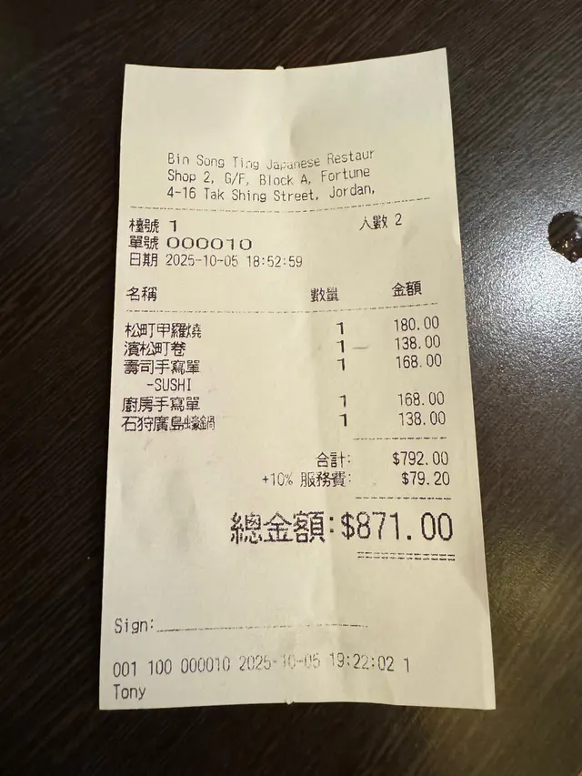 。滨松町卷,一碟六件寿司好似个花环,真系好靓。刺身系每日新鲜飞机货,带子鲜甜软糯,三文鱼油脂甘香,烧左口鱼边微微焦香,醋饭调味温和,酸度轻柔,完美衬托鱼生鲜味