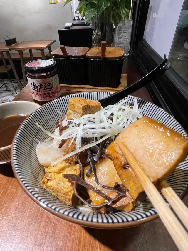 招牌大滷飯,有香口彈牙既陳皮魚蛋,滷水豬腩肉,非常之滑,肥瘦分明,仲有滷水豆腐,也都很滑,很有滷水味,蘿蔔很甜,很美味。有碗滷水汁,如果加落啲飯度撈嚟食,非常之惹味。個餐有奶茶,多奶,好飲。雞絲粉皮非常之大碟,啲雞絲好多,撈左芝麻醬好美味,啲粉皮晶瑩通透,堅韌有咬口。隻炸雞髀非常之好味,新鮮炸出嚟外脆內軟滑又多汁,雞味充足,我非常之喜歡呢個雞髀,食完會想再食。如果唔單叫雞髀,亦都可以叫一個雞髀餐,有滷水汁煮上海麵,啲麵好分明,唔會糊同斷,個湯滷水汁做,所以味道非常之唔錯。…查看更多