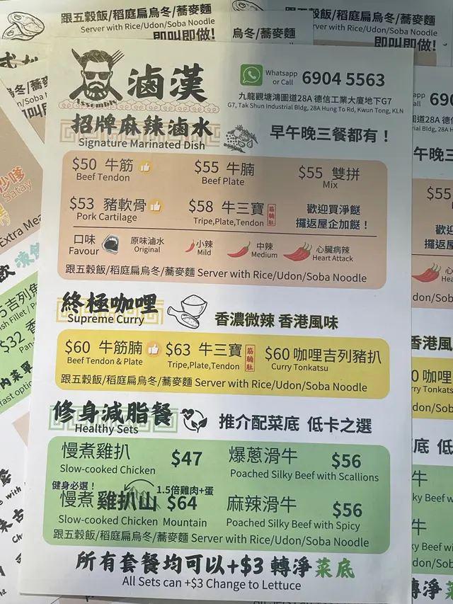 滷漢 (观塘) 网址: https://s.openrice.com/QrLS035eF00 地址: 香港觀塘鴻圖道28A號德信工業大廈地下G7號舖 电话: +852 69045563