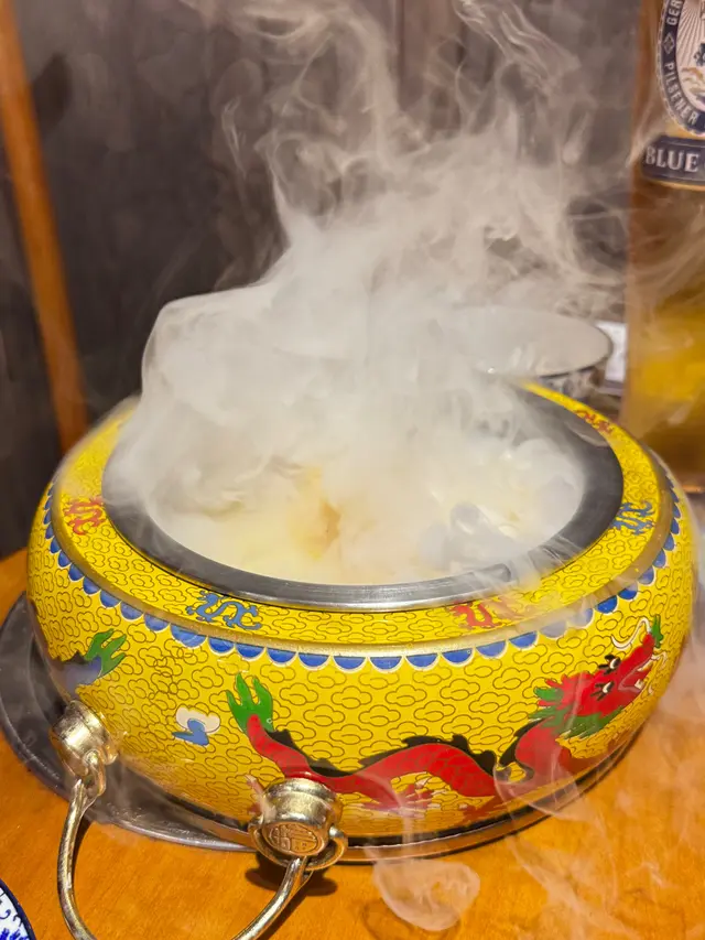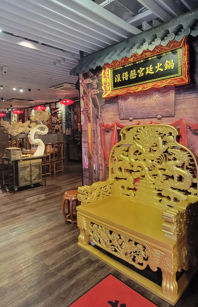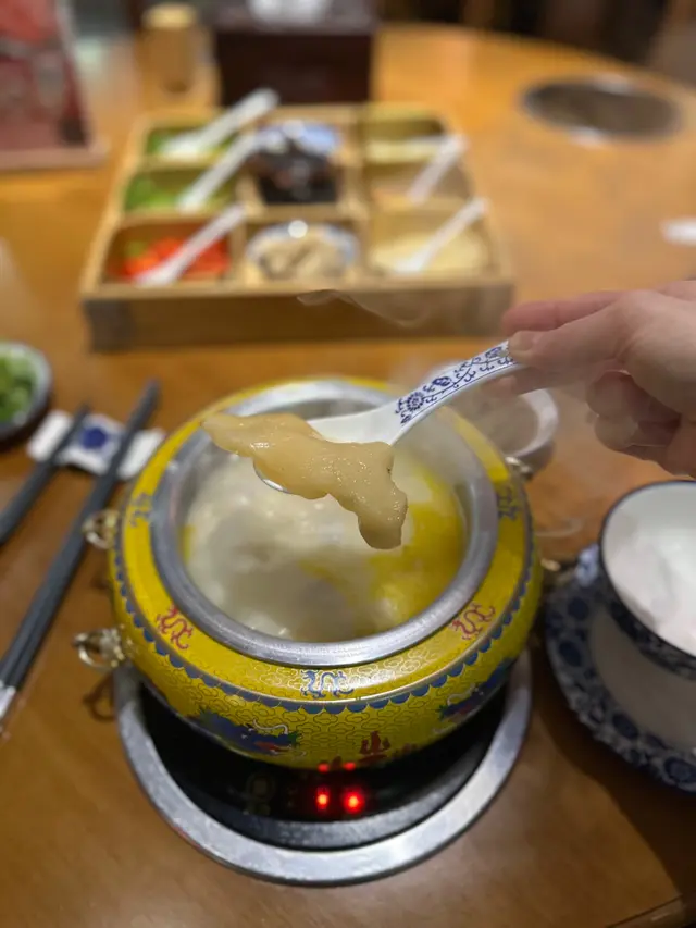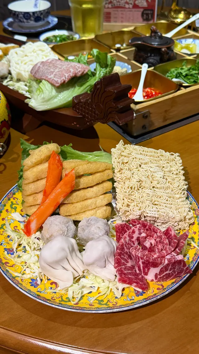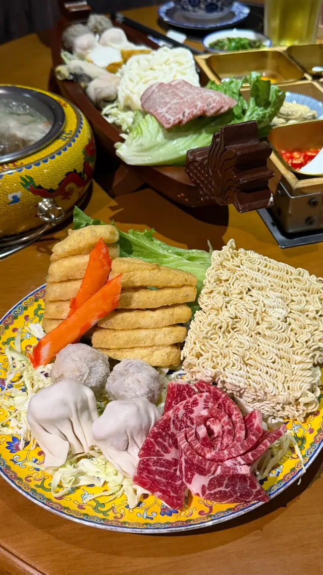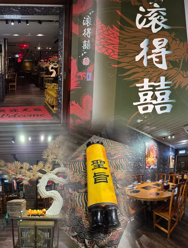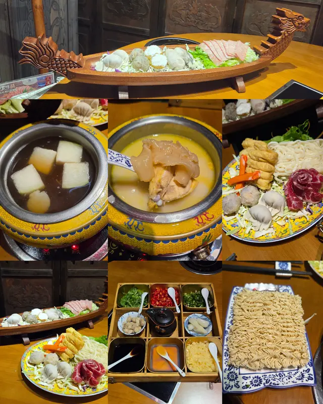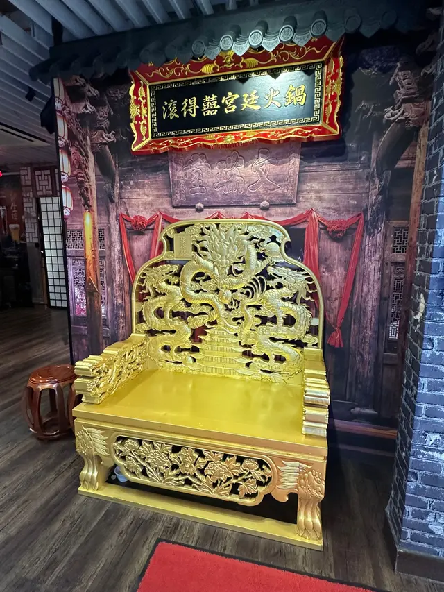 餐廳濃厚的宮廷風格貫穿每個細節,從雕花屏風、紅燈籠到仿古擺設,營造出華麗而有趣的氛圍。特別設有宮廷服飾及龍椅供客人拍照,打卡效果一流,連餐具也精心選用龍紋鍋與鍍金器皿。午市一人鍋設計幾貼心,可以自由選擇心儀湯底,乾淨衛生。餐廳強調每日新鮮熬製湯底及手工製作餃子、丸類,實際體驗亦能感受到真材實料。🥢康熙花膠雞湯底:湯色金黃濃郁,花膠軟滑,雞湯鮮甜不膩,涮食材前先喝一碗十分滿足。🥢順治特色卜卜蜆鍋:蜆量充足,湯底帶蒜香與清酒氣息,海鮮風味突出。試了兩款套餐,整體分量充足,食材配搭見心思:瓏套餐:日本A5黑和牛油花均勻,輕涮數秒入口即化;手打黑松露野菌鮮蝦丸松露香氣足,蝦肉彈牙;紫皇蟹粉豚肉餃蟹味濃郁,值得一試。鼎套餐:伊比利亞橡果豬肉質甘香,手打紫薯流心豬肉丸創意十足,芋泥豬肉餃綿密香甜,日本蟹柳與風琴豆腐吸湯能力強,入味非常。🥢套餐已包飲品,無糖可樂搭配清爽解膩。🌟餐廳以獨特的宮廷主題打造出別具一格的用餐體驗,無論是午市獨自享受一人火鍋,還是與同事共進商業午餐,都可以找到滿足感。…查看更多