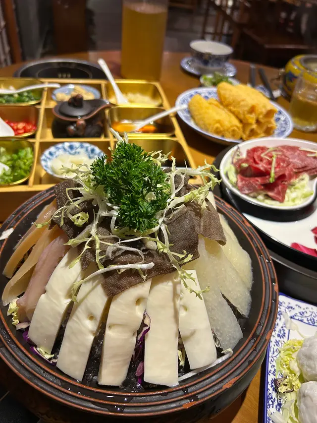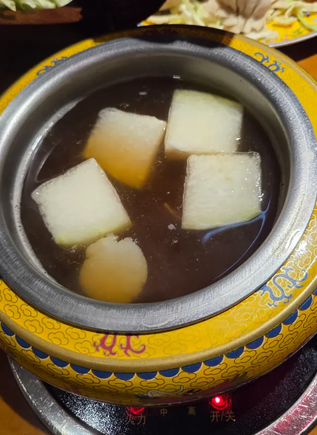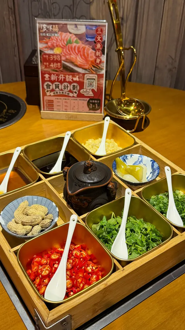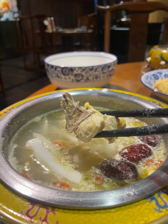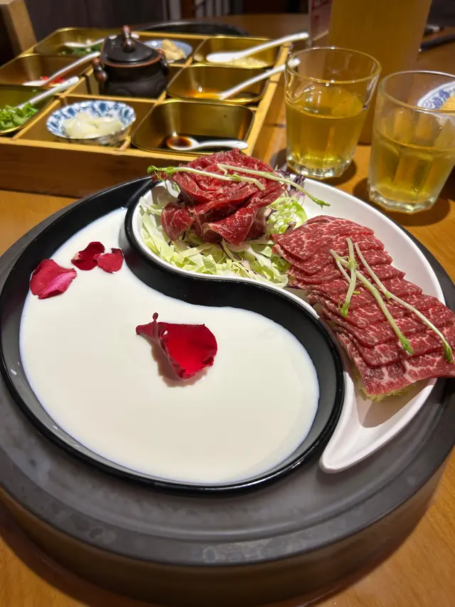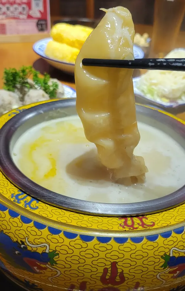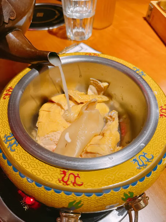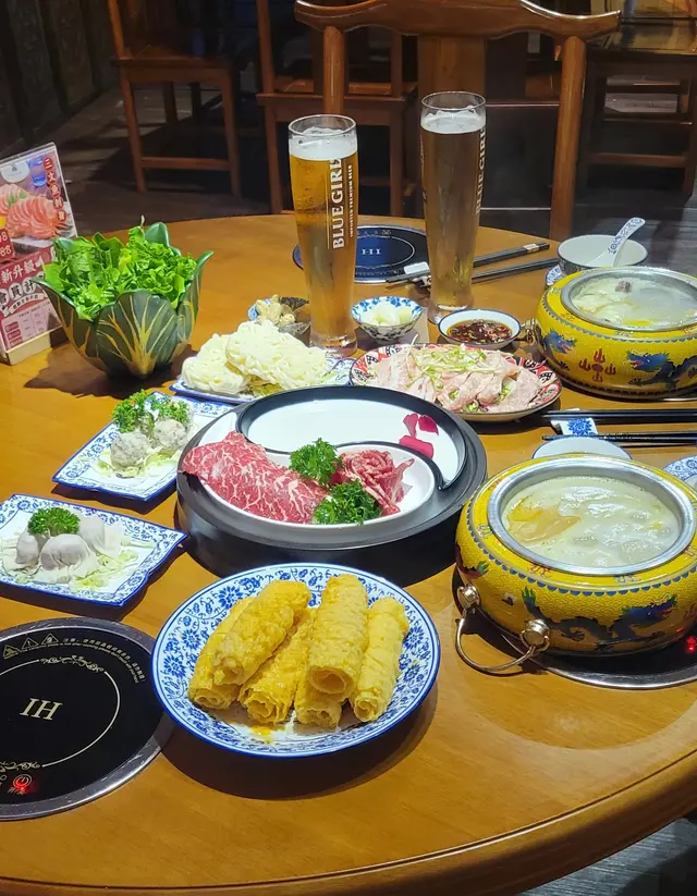 餐廳濃厚的宮廷風格貫穿每個細節,從雕花屏風、紅燈籠到仿古擺設,營造出華麗而有趣的氛圍。特別設有宮廷服飾及龍椅供客人拍照,打卡效果一流,連餐具也精心選用龍紋鍋與鍍金器皿。午市一人鍋設計幾貼心,可以自由選擇心儀湯底,乾淨衛生。餐廳強調每日新鮮熬製湯底及手工製作餃子、丸類,實際體驗亦能感受到真材實料。🥢康熙花膠雞湯底:湯色金黃濃郁,花膠軟滑,雞湯鮮甜不膩,涮食材前先喝一碗十分滿足。🥢順治特色卜卜蜆鍋:蜆量充足,湯底帶蒜香與清酒氣息,海鮮風味突出。試了兩款套餐,整體分量充足,食材配搭見心思:瓏套餐:日本A5黑和牛油花均勻,輕涮數秒入口即化;手打黑松露野菌鮮蝦丸松露香氣足,蝦肉彈牙;紫皇蟹粉豚肉餃蟹味濃郁,值得一試。鼎套餐:伊比利亞橡果豬肉質甘香,手打紫薯流心豬肉丸創意十足,芋泥豬肉餃綿密香甜,日本蟹柳與風琴豆腐吸湯能力強,入味非常。🥢套餐已包飲品,無糖可樂搭配清爽解膩。🌟餐廳以獨特的宮廷主題打造出別具一格的用餐體驗,無論是午市獨自享受一人火鍋,還是與同事共進商業午餐,都可以找到滿足感。…查看更多