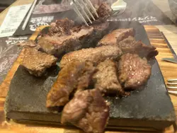 放工後跟同事來到中環的「滿滿食堂」食一個簡單的晚餐🍽️,這是一間主打石燒料理的小店🔥,亦有壽喜燒🍲、定食🍱及特色飲品🥤選擇,菜式精緻又不失份量😉店內裝潢走簡約日系風格🌿,木系傢俱🪵配上柔和燈光💡,牆上掛有手繪風插畫🎨,座位設計寬敞🪑,營造出舒適悠閒的用餐氛圍。而且店員服務親切😊,細心介紹餐點📖,適合三五知己聚餐👫👭或獨自享受一人時光🧍♂️☕。薩摩牛和牛石燒 (150g) $126薩摩牛和牛石燒肉質細嫩🥩,油花分布均勻✨,入口即化😋,和牛石燒後香氣撲鼻👃,既滿足又不膩👍。 套餐附送的白飯🍚/紫菜飯🍙/熊本咖喱飯🍛可免費升級為 蟹皇飯🦀🤩,蟹香濃郁,好惹味❗️套餐+$8 加配一杯 愛玉芒果奶昔🥭味道清甜🍹,愛玉果凍增添口感🍮,冰涼消暑🧊又解膩。壽喜燒牛肉鍋 $72壽喜燒牛肉鍋湯底甜鹹平衡🧂,肥牛片口感嫩滑🥩,吸收湯汁更美味😋,配搭豆腐、芋絲、獅子狗、蔬菜🥬等配料,口感層次豐富,再佐以生雞蛋蘸食🥚,口感更滑順😍 套餐+$8 加配了一杯 鮮果水果茶🍹,味道清新🍋,冰涼解膩🧊。…查看更多