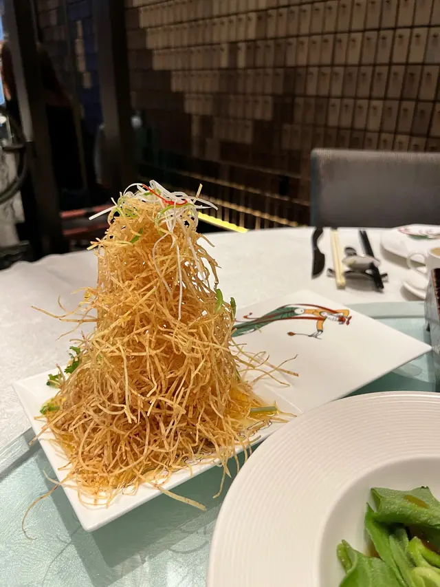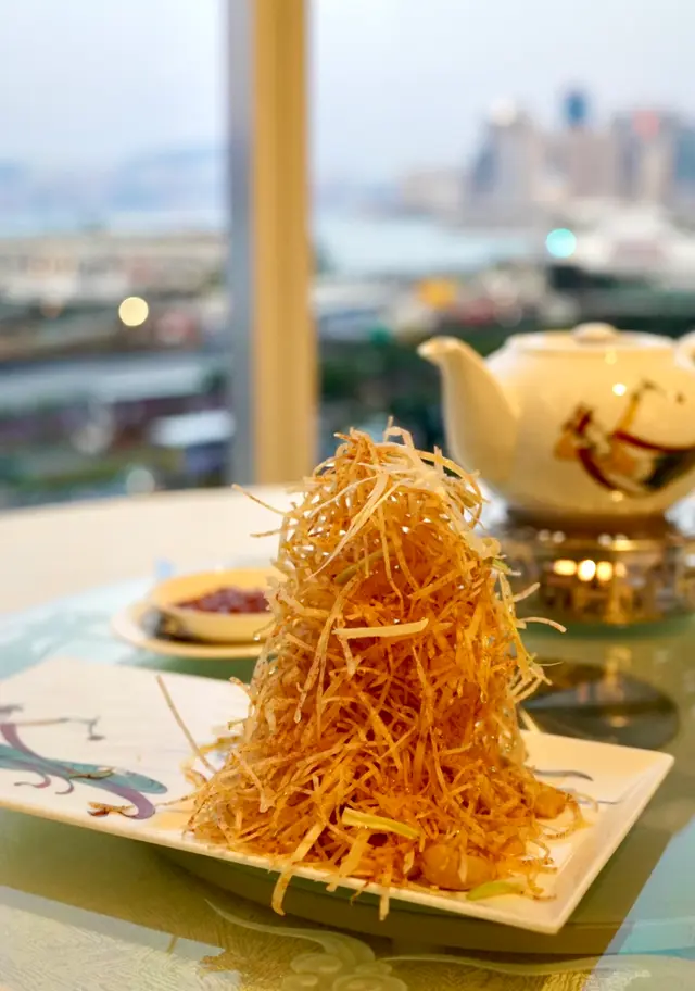🎉✨ 前幾天跟閨蜜去慶祝生日,我特意挑選了一間高級中菜廳,能俯瞰維港的美景!雖然當日的霧氣令夜景稍為模糊,但食物、服務及環境已滿分!❤️這家餐廳獲獎無數-滿福樓,品味行政總廚孫錦勝師傅精心製作的花雕粵韻美饌,讓花雕酒與廣東菜的完美交織的,裝修更以西關為主題,獨特又有特色!🍽️ 而當日我們點了:- 金絲脆腰果:外焦內嫩,是炸了的芋頭絲,師傅的手工太厲害了脆卜卜,甜甜的,底下還有腰果配襯很很美味!- 花雕原條遼參:鮮美的海味,配上花雕酒味道特別,令我們回味無窮。- 蜜汁烤西班牙黑豚肉叉燒**:甜蜜的滋味,肉質鮮嫩。- 花雕醉香筍殼魚:魚肉滑嫩,搭配香醇的花雕酒,非常特別!- 風味金榜開邊龍蝦:鮮香四溢的龍蝦,而且蝦肉都非常滑溜。- 魚湯手打魚腐浸時蔬:清爽又健康的選擇,魚腐的口感特別細膩。- 滿福精選甜品:香蜜蛋散、蛋撻仔、迷你楊枝甘露,每一口都讓我們很滿足!查看更多