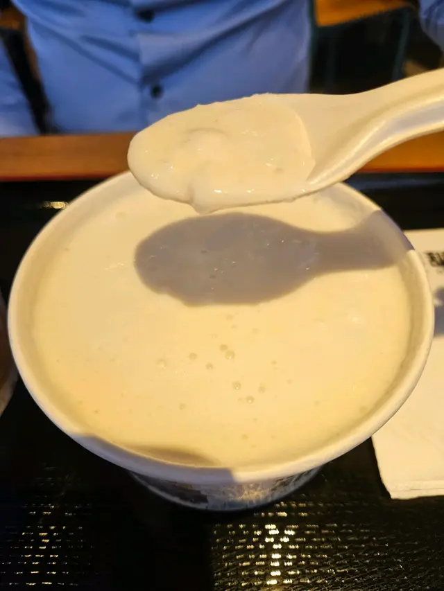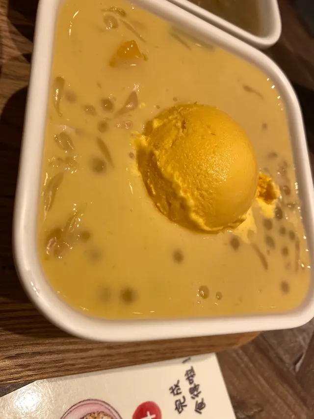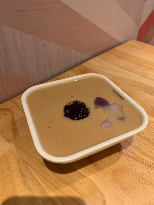 慶幸不是給予看似船槳的扁身木匙,否則!唔知食到幾時呀!熱薑汁鮮奶桃膠芋圓 $49港式甜品配搭台式甜品的口味新嚐試,