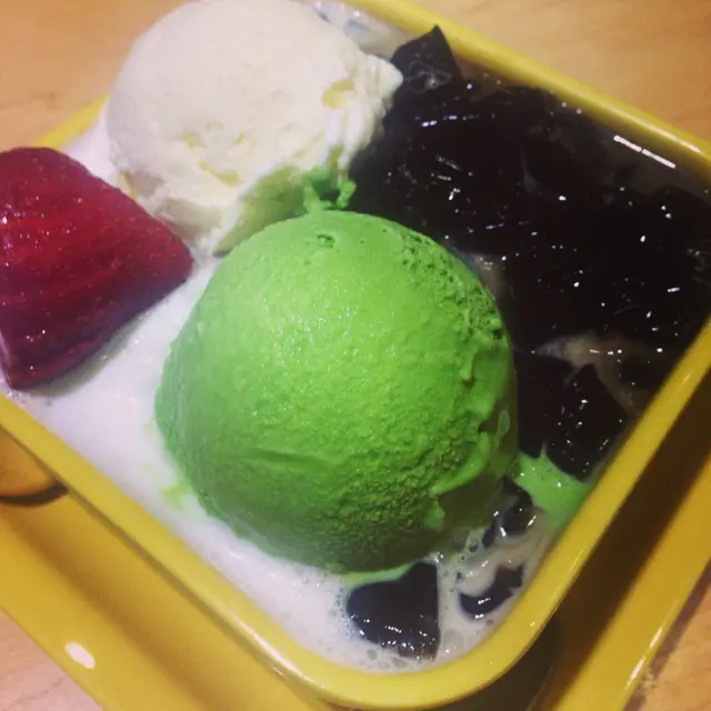食完下午茶,直到夜晚九點幾都未想食晚飯,於是直接食甜品作為一日既完結。自從數個月之前王記消失左之後,同區基本上冇哂好食既甜品,唯有榴槤先可以滿足到我地。其實滿記都只係得以下兩樣野比較吸引:榴槤忘返 ($42)個人黎講比較鐘意食呢個,因為黑糯米飽肚又唔太甜,唔會搶左榴槤味。榴槤雪山 ($42)雪山可以揀vanilla或者芒果, 後者配搭比較怪, 下次應該會揀番vanilla。今晚榴槤好甜好大舊,所以好滿足。…查看更多