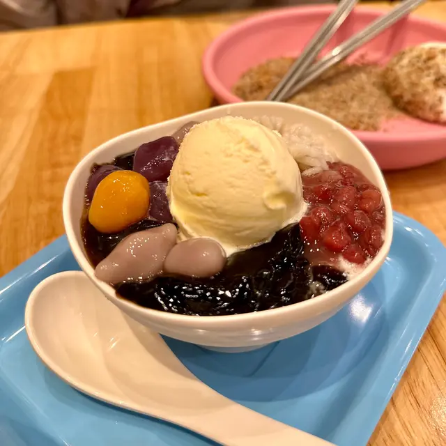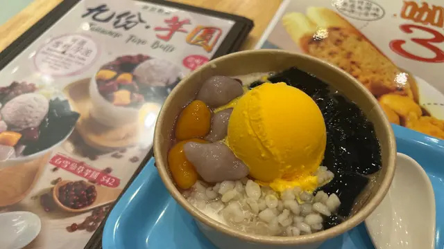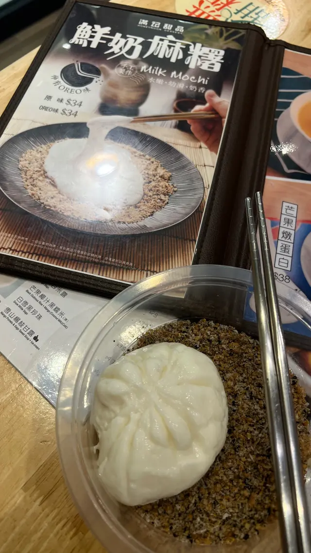 今日食得好盡,一個人點左兩個甜品。最近好鍾意食芋圓,所以一嚟就點左白雪仙草芋圓配芒果雪糕。雪糕可以揀雲呢拿味,抹茶味或者芒果味。我揀嘅芒果味雪糕味道一般,下次要試吓其他味。芋圓本身都唔錯,唔會太甜,但亦都有味。只不過佢哋加咗薏米,我覺得唔係咁夾。薏米比較硬,又冇乜味,整淡左成碗甜品。鮮奶麻糬食完個芋圓點半覺得唔夠喉,記得上次同朋友一齊share個鮮奶麻糬,覺得唔錯,但係share唔係咁夠食,所以今次試吓一個人食。初初食落去味道唔錯,鮮奶麻糬好軟滑,比起糖不甩軟熟好多。麻糬本身應該係喺雪櫃度攞出嚟,所以質感有啲凍,撈埋啲花生糖,都幾清新。但係始終之前已經食咗個芋圓,在一個人食過鮮奶麻糬,食到一半就開始有啲飽,建議如果已經有嗌其他嘢食,都係同人哋一齊share個鮮奶麻糬會滋味啲。查看更多