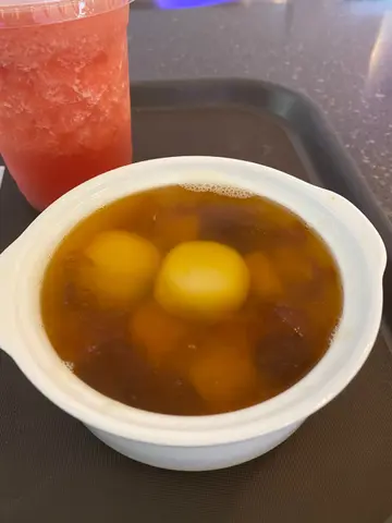 近排见到商场开始做优惠活动,今日放假约朋友出街去shopping 啦!行到累商场City Super 里面有地方给人休息同食嘢。见到有满记啱晒可以吃少少食物,充完电又可以再shopping 。新出了很多口味,台湾九份芋圆,又有鲜奶麻薯等。冻饮又有几款新的水果果茶西瓜汁,清清甜甜非常解腻,原本想喝水果果茶,不过太大杯惊喝不完。姜汁桃胶圆又圆新口味天气开始冻吃姜汁甜品就至啱呀!芝麻汤圆够香浓幼滑而芋圆几烟烟韧韧。桃胶煲得软软,吃下很滋润。