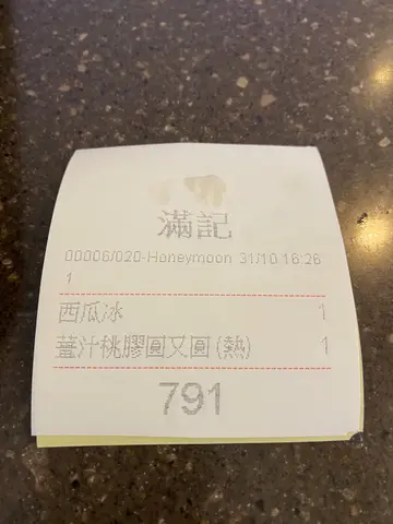 一行4个人,食完饭揾个地方坐下,倾下计,黎左满记食糖水...叫左个热芝麻糊杏仁茶($29),阿姐劲问加唔加汤丸🙄3粒加多$12蚊... 最后当然无加啦!埋到位食,碗野劲稀,平时芝麻糊唔会咁,加左杏仁茶会变左水?仲叫左芒果豆腐花($33)海底椰凉粉加芋丸($30),个海底椰凉粉👌🏼,芒果豆腐花就好一般。总结唔系贪方便唔会㨂,又细碗又贵又唔系好食