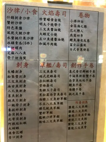 来到这种放题店就不客气了,刺身,寿司🍣,海鲜🦞🦀️,串烧,甜点🍮无脑下单,平日里舍不得尝的山珍海味此刻I want them all😄😄😄,从最爱的三文鱼刺身,遍尝鲍鱼、吞拿鱼、燕窝、(不知名)螺肉、(不知名)贝肉、甜虾🦐、海胆、鱼子、鹅肝,258/位真的是满足啦!!美中不足的就是位置有点小了,此外甜点红豆雪糕太淡了,烧鸡翼也不够味道。不过店家提供的哈根达斯雪糕完美弥补了这一缺憾,另外店家的服务也很好呀,前后安排座位和整理台位都很热心,这是在香港吃得最意犹未尽的一家日料店了,吃了还想再来😋…查看更多