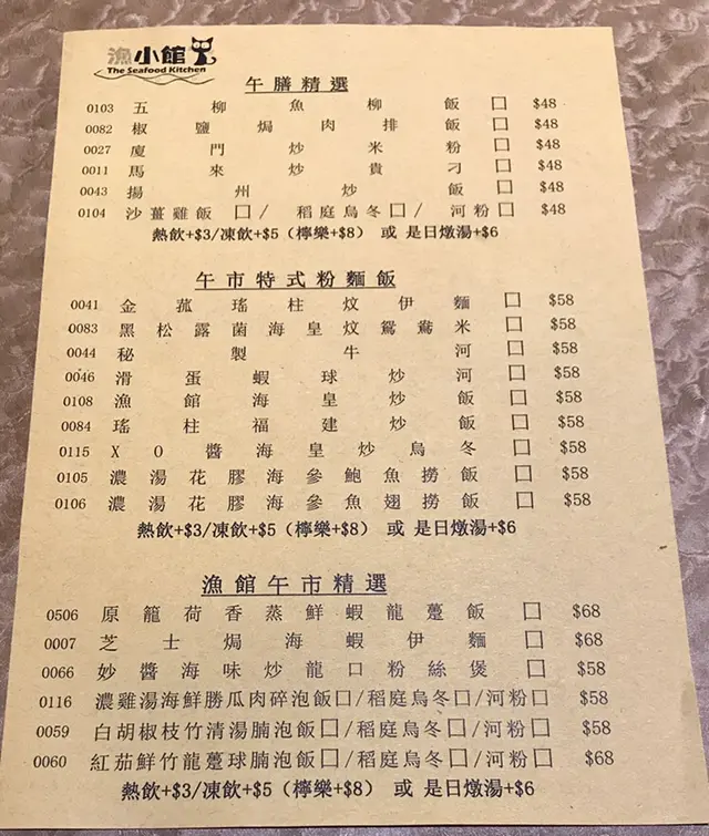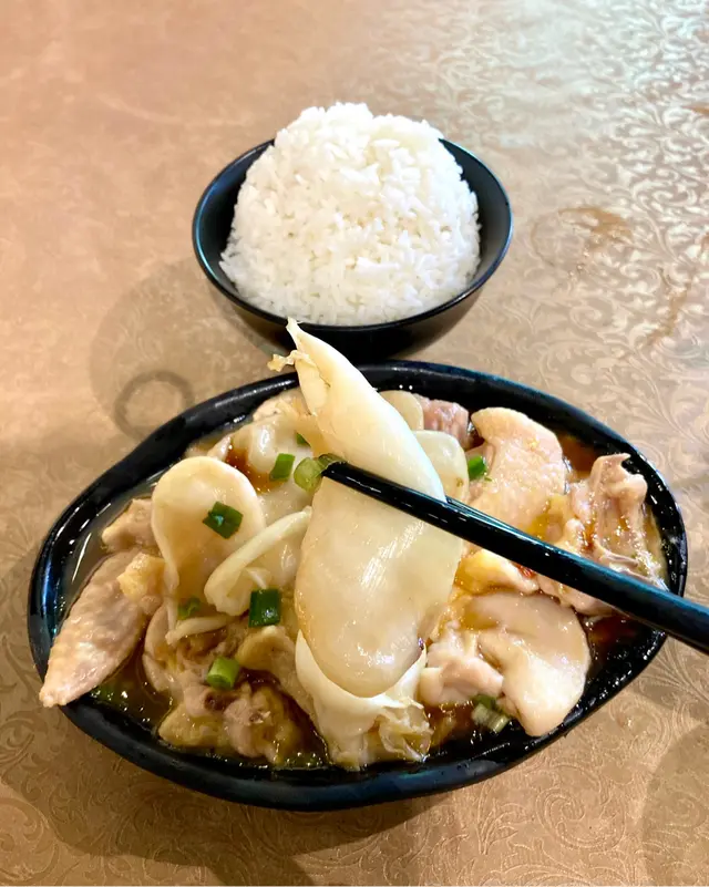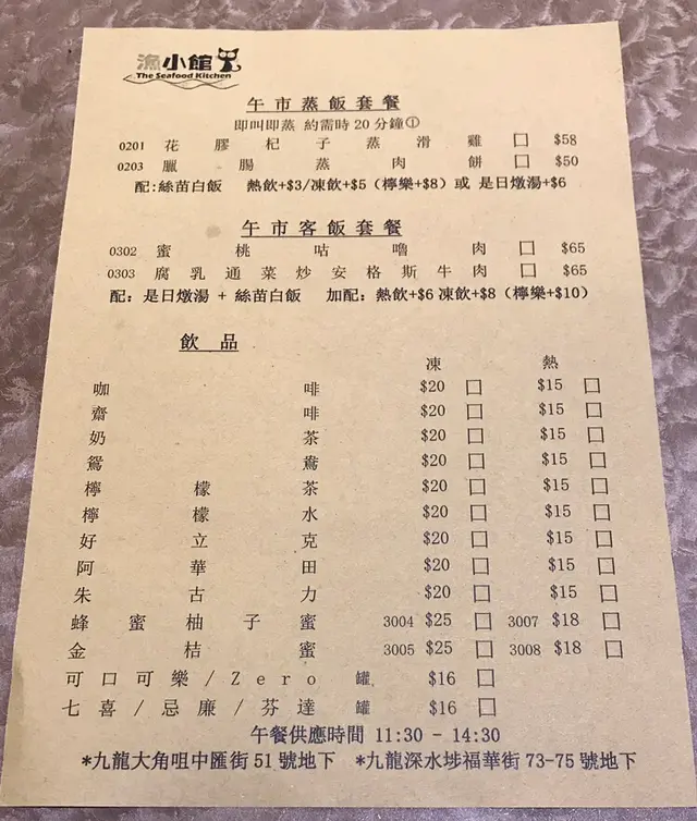 漁小館位於大角咀車房附近,地理位置唔近主要幹道,但午餐都坐無虛席,主打中式酒樓款式,午餐都係炒粉麵飯為主我見好多人叫乾炒牛河,但我鐘情於蒸飯,點左個花膠蒸雞飯,餐牌寫明要等20分鐘當食物到時,我影相才發現雞係未熟😱😱我研究左一陣,才通知店員店員都好有禮貌幫我換😅😅好彩我唔趕時間,又要等20分鐘........終於有得食喇~花膠軟硬適中,雞肉係滑滑地,醃料入味雞係連碟早早放入雪櫃,再拎出黎叮,所以雞肉「痴」住隻碟,而且斬件不均,所以肉比較少,白飯都偏硬,可能番叮等了太耐🙈◭ 花膠蒸雞飯 $48…查看更多