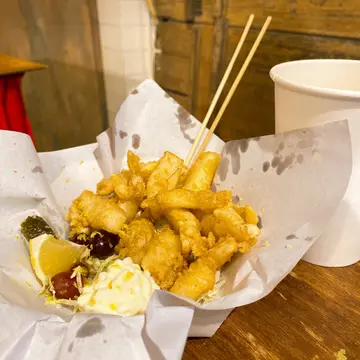 同朋友去长洲大玩特玩梗系唔少得周围食小店呢间走日系随性风嘅小食店非常特别行过一眼就望到 座位装饰等都好随性老板同老板娘都好有性格2个人一脚踢打理食物嘅选择唔算好多 但胜在新鲜热辣炸 非常好食😋特别系图中嘅炸生蚝🦪大大只生蚝🦪薄薄嘅炸粉啖啖咬茄去都爆晒蚝汁 谂起都想再食多份🤩🤩🤩另外附有蛋黄沙拉酱同埋柠檬汁🍋非常夹得嚟仲可以解埋油腻感因为啱啱食完午餐先见到所以净系食咁一款食品下次一定会再光顾食埋其他😉😉…查看更多