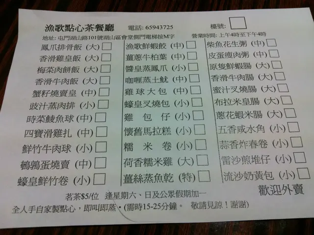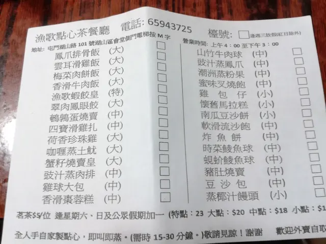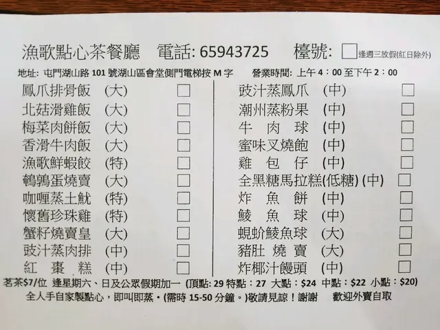 ♂∥ 在屯門生活了接近二十年才知道家附近有這一間茶樓,可想而知位置是多麼隱蔽,完全想不到社區中心竟然藏了一間,舊式的裝潢,茶水和醬料都自助,不收加一費用,性價比高。゚・𖥸────── -ˋˏ 𝓜𝓮𝓷𝓾 ˎˊ- ──────𖥸 。゚・☕︎ 茗茶 HKD24(3位)𖦹奶皇千層馬拉 HKD26超級推薦,奶皇味道香,入口鬆軟又有奶黃醬,推介!𖦹炸椰汁饅頭 HKD28很少茶樓會整,炸得外脆內軟,點少少練奶已經好好吃,必食!𖦹魚波(炸鯪魚球) HKD28家人說很有魚味,不過我不喜愛鯪魚球,但賣相相當不錯。𖦹原隻鮮蝦腸 HKD31腸粉夠軟夠滑身。𖦹鵪鶉蛋燒賣 HKD28個人喜歡二者的配搭,好吃。𖦹漁歌鮮蝦餃 HKD31正常味道。𖦹梅菜肉餅飯 HKD28家人喜歡點。𖦹懷舊珍珠雞 HKD31不需要點了來吃,很普通。̍̊˙· 𓆝.° 。˚𓆛˚。 °.𓆞 ·˙‧̍̊ ‧̍̊˙· 𓆝.° 。˚𓆛˚。 °.𓆞 ·˙‧̍̊…查看更多