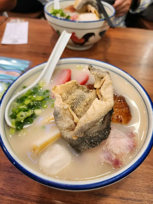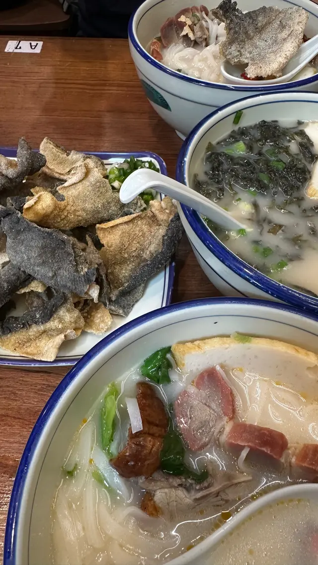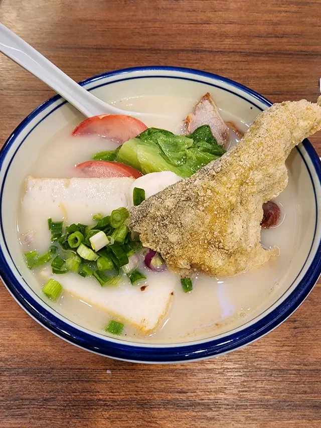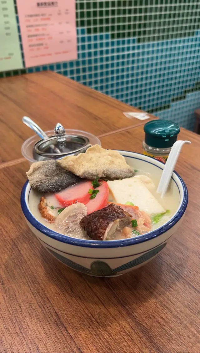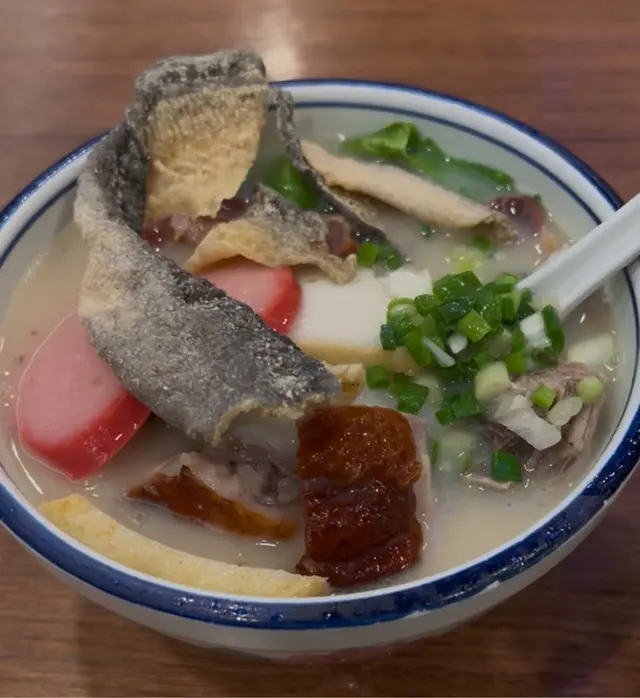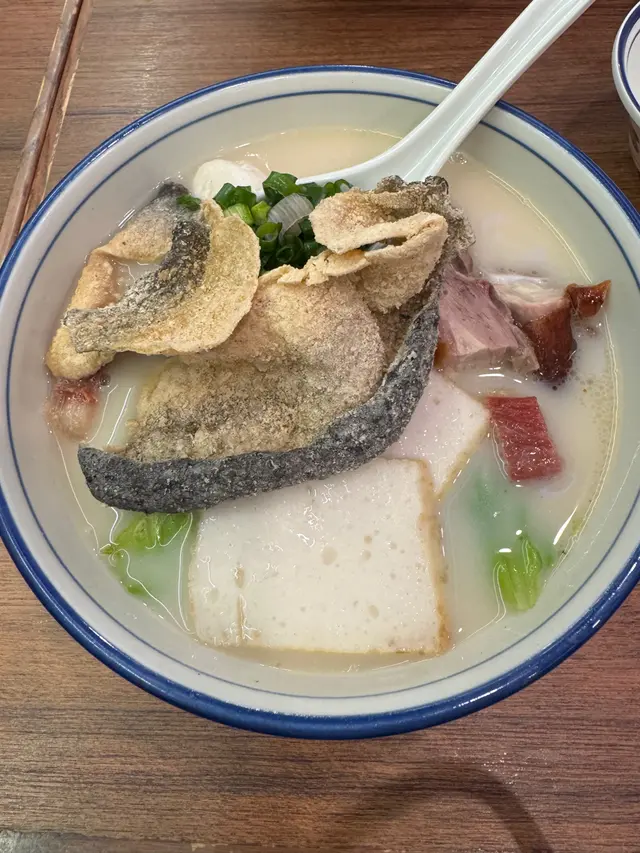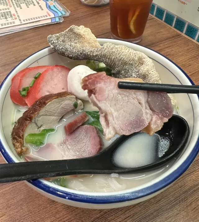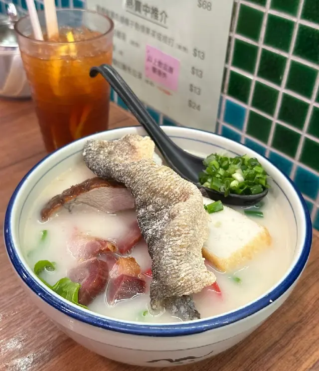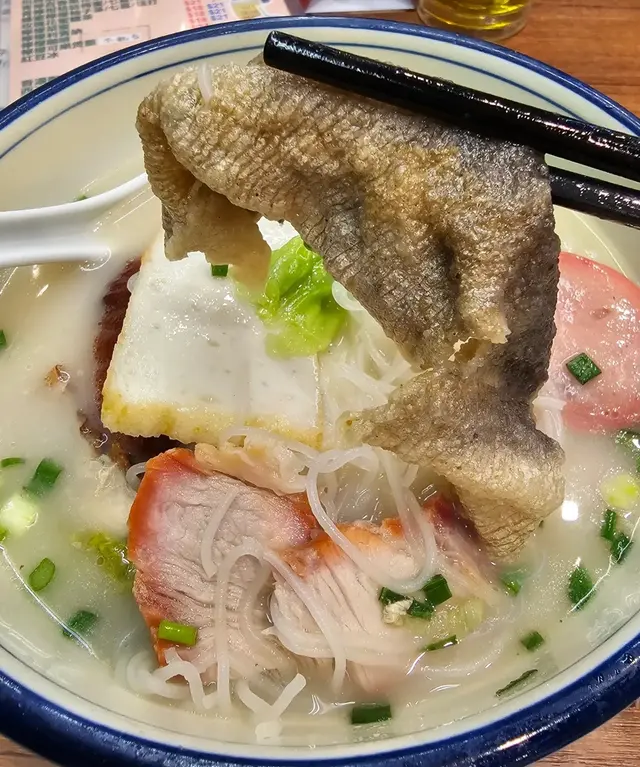 今日中午喺鴨脷洲大街閒逛,見到呢間「漁港艇仔粉」係香港仔區好似幾出名,就入去試下。依間餐廳既裝修好有漁村風情,牆上仲有舊相介紹鴨脷洲嘅漁港歷史,坐低食飯有種懷舊感覺,餐廳入面仲寫明「大地魚湯,不含味精」。午市人流算爆滿,好多人捧場,環境舒適,價錢親民。招牌艇仔魚湯飯 (紅腸、燒味、魚片、炸魚皮)湯飯用大地魚湯底,米飯吸飽咗湯汁,粒粒彈牙。餸料勁多,紅腸煙韌有咬口,燒味(燒鴨+叉燒)皮脆肉嫩,魚片厚身新鮮彈牙,仲有脆卜卜嘅炸魚皮浮喺上面。整體幾多餸,食到最後一啖都仲有料,夠滿足,食落唔覺得口渴。炸魚條一條依份小食,份量真係幾多!金黃酥脆,咬落去鬆化即碎,冇腥味仲帶淡淡魚香。食完完全頂肚,性價比高到爆燈。漁港艇仔粉唔只係艇仔粉專門店,係鴨脷洲嘅隱世午餐好去處!下次嚟香港仔,必食呢度,記住試下佢哋嘅大地魚湯底,保證上癮,強推畀愛艇仔粉嘅你!…查看更多