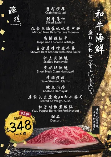 「浜烧」是将岸边即捕既海鲜即烧,属于日本传统烹调方式,以火烤新鲜海产配以简单调味,虽然呢间餐厅做唔到岸边即捕,不过都一样好味😋「龙虾飨宴」二人餐有齐沙津、刺身、龙虾、帆立贝、牛柳同乌冬,只系七百几蚊,性价比相当高对浜烧龙虾同帆立贝既印象尤其深刻,烧龙虾肉质弹牙,鲜味十足,搭配烧过既芝士特制酱汁,带有淡淡的咸香,提升龙虾的鲜味帆立贝带有自然鲜甜,煮得刚好,咬下去时非常柔软,职员烧既时候加入牛油,好浓郁嘅味道刺身片片均匀,天使虾最有惊喜,虾膏甘香,口感软糯原本以为平平无奇的乌冬,估唔到原来用龙虾壳熬煮汤底,令到味噌汤看起来清淡,实质鲜美香甜,相当浓郁!炸蒜片牛柳蒜味澎湃,一口牛粒软腍,牛味够浓用一口泡芙甜品作结,好满足嘅一餐…查看更多