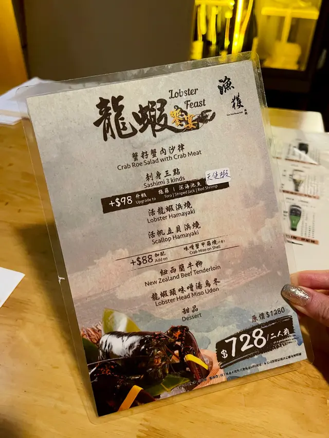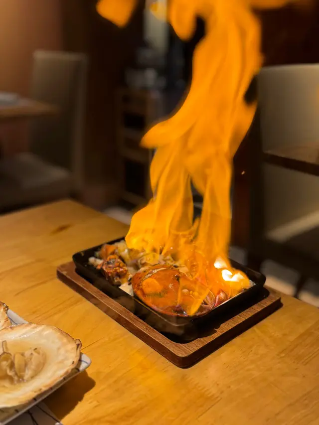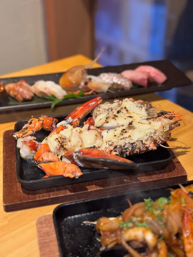 「浜燒」是將岸邊即捕既海鮮即燒,屬於日本傳統烹調方式,以火烤新鮮海產配以簡單調味,雖然呢間餐廳做唔到岸邊即捕,不過都一樣好味😋「龍蝦饗宴」二人餐有齊沙津、刺身、龍蝦、帆立貝、牛柳同烏冬,只係七百幾蚊,性價比相當高對浜燒龍蝦同帆立貝既印象尤其深刻,燒龍蝦肉質彈牙,鮮味十足,搭配燒過既芝士特製醬汁,帶有淡淡的鹹香,提升龍蝦的鮮味帆立貝帶有自然鮮甜,煮得剛好,咬下去時非常柔軟,職員燒既時候加入牛油,好濃郁嘅味道刺身片片均勻,天使蝦最有驚喜,蝦膏甘香,口感軟糯原本以為平平無奇的烏冬,估唔到原來用龍蝦殼熬煮湯底,令到味噌湯看起來清淡,實質鮮美香甜,相當濃郁!炸蒜片牛柳蒜味澎湃,一口牛粒軟腍,牛味夠濃用一口泡芙甜品作結,好滿足嘅一餐…查看更多