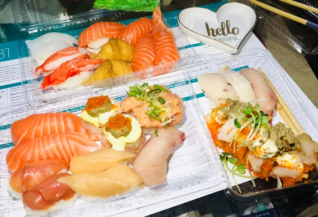 第一次叫點單外送,旺角送到沙田,預計送抵時間係65分鐘,由落單到收到total用左70分鐘,路途唔短,只係遲左5分鐘,絕對合格!電單車外賣黎到,包裝都仲算ok,有兩個冰袋包住,keep到凍,呢下算貼心,抵讚食物方面,壽司有大件有細件,但有d真係細件得可憐海膽蟹膏丼只係食左一半,因為真係難食到嘔帆立貝壽司淋bet bet,毫無口感,又係食剩唯一覺得好食既係三文魚腩壽司總括而言,想食平壽司可以去試下,但唔好有咩期望查看更多