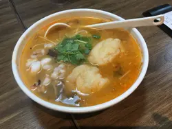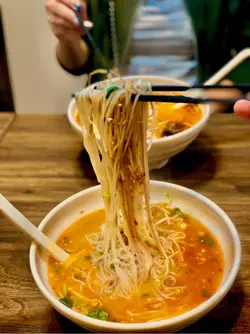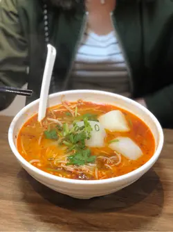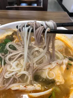 几个月以来都见到,但都咁岩未开门。呢日见到终于开左,所以就走入去食下。叫左酸辣,小小辣,点知都辣到上脑,好刺激😂面条超有惊喜,唔清楚算唔算米线,但无平时食嘅咁腍咁滑,反而好有质感,而且有三色,白、黄、紫。紫色质感相较粗糙、黄、白分别唔大。𩠌食方面就要左猪肉丸同鸡肉,份量唔多,但酸辣汤味浓,都好入味。而且又有酸菜芽菜,够食,都好食 😋😋😋价钱合理,可以再嚟~ ✌🏻晏昼又有新选择啦~墙上仲介绍左渔粉哥品牌故事,虽然简体字,但都有趣~