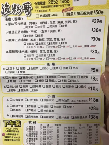 漁粉哥 (红磡) 网址: https://s.openrice.com/QrLS0ZcO900 地址: 香港紅磡必嘉街112號紅磡灣中心地下11號舖 电话: +852 26521968