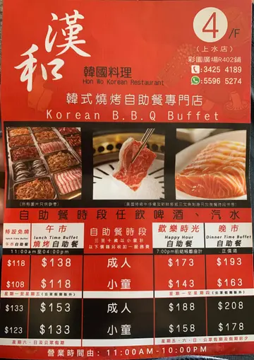 漢和韓國料理 (上水) 网址: https://s.openrice.com/QrLS0S4q900 地址: 香港上水彩園路8號彩園廣場4樓R402號舖 电话: +852 34254189