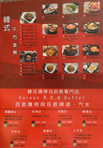 #20230128 🤍📍 汉和韩国料理 上水彩园路8号彩园广场4楼R402号舖 🍽️观塘|旺角|沙田|佐敦|铜锣湾|荃湾均有分店——————————————————————————————#烧烤自助餐 #公众假期 #晚市 $233🥢 #前菜 💭 佢既汤系劲吸引🤩有3款拣,🐷去当日既老火靓汤系#菜干猪骨汤 ,好饮但另外两款仲出色,#海鲜辣汤 有好多虾🦐鱼🐟鱿鱼🦑萝卜系入面,不过辣度十足🥵怕辣既朋友可以试佢个#人参鸡汤 ,用料足真系有隐约既参味,晚市除左寿司有埋刺身食🍣虽然得#三文鱼刺身 ,不过都refill得好快,绝对系对得住价钱啦.🥢 #熟食💭 #猪脚姜 系🐷每次去必食,佢啲猪脚系煮到好淋,啲胶质出晒尼,粒蛋系煮到铁蛋咁🥚#炒粉丝 都唔差,系有几款煎饼有少少伏🚁其他🐷都无乜点食,听讲午市系可以拣唔要烧肉,然后平啲,返工放饭既朋友都谂得过呀😎.🥢 #烧烤💭 烧肉料当然重要啦,技巧都同样重要😅#牛仔骨 好似得晚市先有,以🐷既技术都烧到佢骨肉分离,腌好左甜甜地好味😋另一推介#羊肉 都几好,羊味劲重🐑其他同普通烧肉质素差唔多,无咩特别.🥢 #甜品💭 #雪糕 系雀巢,仲有啲凉粉粒、菠萝粒🍍西瓜粒🍉啫喱等等可以diy甜品,🐷有啲想食豆腐花可惜太晏佢无要refill得返啲碎😥总括尼讲呢间系🐷想咩都食下时候首选既韩烧,样样食啲都饱到呕😂.#上水美食 #🐷在上水 #观塘美食 #🐷在观塘 #旺角美食 #🐷在旺角 #沙田美食 #🐷在沙田 #佐敦美食 #🐷在佐敦 #铜锣湾美食 #🐷在铜锣湾 #荃湾美食 #🐷在荃湾 #🐷_食