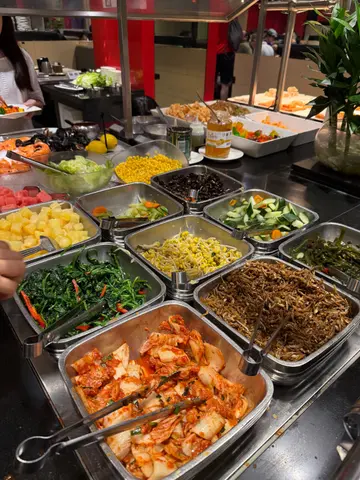 汉和已经有好多年了, 初初食都系铜锣湾广场ー期, 之后上水食过, 佐敦伦敦广场都食过, 我谂有超过一年无再帮衬😅今日心血来潮想食一下, 比安排坐长卡位, 望到旺角街景, 又几好😁👍, 之后出去望下有乜嘢食, 有不同款式肉类🐽猪牛🐮仔骨牛肋骨牛脷🐔鸡肉鸡翼🐏羊, 亦有海鲜🪼例如鱿鱼, 亦有红肠芝士肠火腿蔬菜有红椒🫑粟米仔🌽翠肉瓜🍆矮瓜金菇冬菇鸡脾菇等等, 肉类我食左猪鸡羊同鱿鱼, 味道比预期中好, 腌肉又唔会太咸, 最惊喜有鳗鱼👍👍😋食落几肥美唔腥, 煎蔬菜都好好食😋 日式野有三文鱼刺身同寿司🍣, 亦有炸物例如炸曼头多春鱼春卷煎堆仔, 冻海鲜有🦪青口同🦐虾, 前菜有沙律同泡菜芽菜菠菜西芹云耳炸鱼仔🍍菠萝🥒青瓜🍅蕃茄仔🥗沙律菜, 生果有🍉西瓜蜜瓜火龙果, 熟食有炒饭炒粉丝炒🥦西兰花, 三文鱼骨, 酸菜鱼, 亦有碗仔翅, 中汤, 人参鸡汤, 海鲜汤, 亦有猪脚姜, 甜品有雪糕,糕点,豆腐花同凉粉, 饮品有罐装汽水纸包茶亦有啤酒, 我试左炒菜一点前菜亦有试煎堆仔春卷粉丝, 味道真系唔错, 碗仔翅同人参鸡汤都好好味, 海鲜汤好咸唔建议试❌猪脚姜试左一旧猪脚唔系太淋, 蛋都系无乜蛋味, 醋都无乜酸味, 豆腐花唔滑无豆味😅不过2个人502元, 有敢多选择, 都算几抵😁😃🥳唔怪之得闲日都坐爆人👍而且店员唔会叫先帮大家更换烧烤盘, 依个值得赞赏💯…查看更多