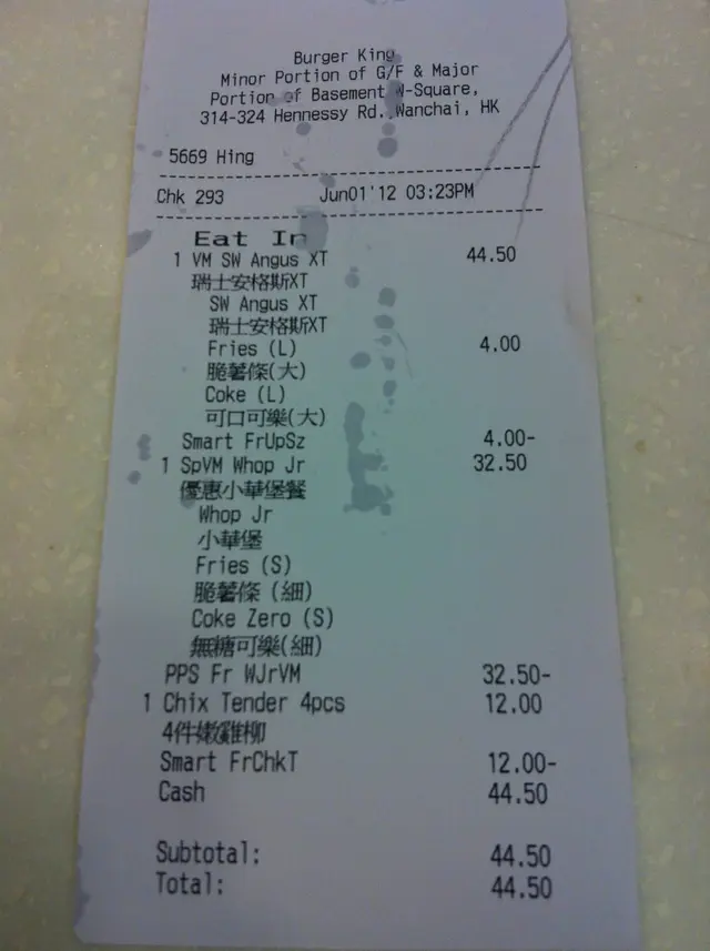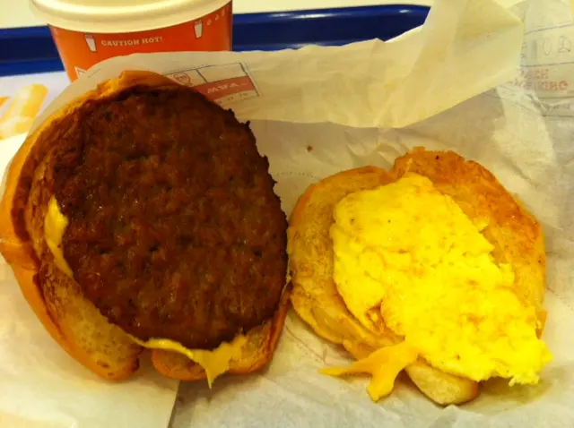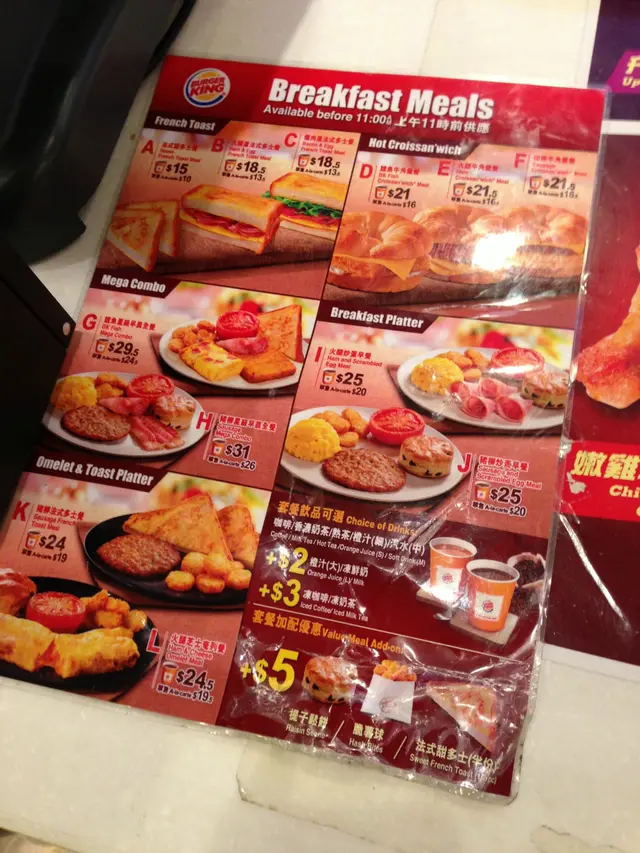 星期六的早上,因事路過灣仔而時間尚早,於是便來了Burger King這裡來個平日難得吃到的Burger King早餐。這裡早餐的選擇也不少,看完一輪餐牌後我決定要了一個火腿芝士奄列早餐配咖啡,另外再加半片法式甜多士。這個火腿芝士奄列內裡有些火腿粒,另外再有一小片的片裝芝士,由於奄列煎得夠熱,所以吃的時候芝士是半熔的,入口帶有芝士香也增加了口感,只是欠缺了蛋香,否則會更加好吃。提子鬆餅吃來比較濕了一點,牛油香不明顯,吃來只是普通。蕃茄片有很輕微的煎過,但本身蕃茄質素並不太好,吃來不夠香甜。法式甜多士用上了半片方包,沾上蛋漿後再煎,然後加上砂糖便成,入口味道香甜,可以一試。即磨的咖啡入口太苦了一點,即使入大量的奶及糖也無補於事。…查看更多