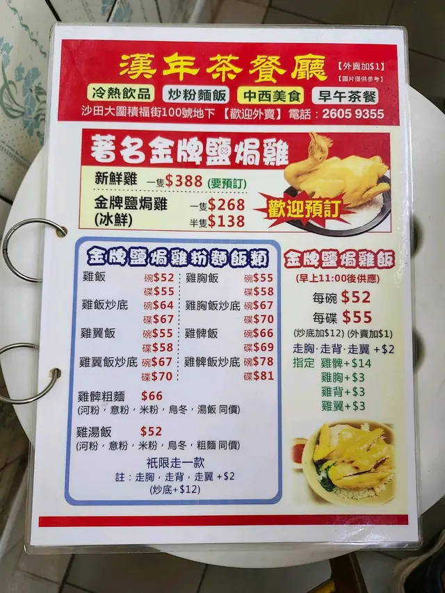 漢年茶餐廳 (大围) 网址: https://s.openrice.com/QrLS03HW000 地址: 香港大圍積福街100號地舖 电话: +852 26059355
