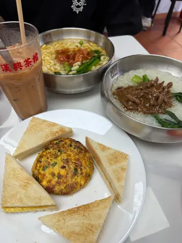 星期六九点松少少去到门口,已经见到条小人龙,好在五分钟唔使就有位。店内唔算好大,搭枱就必然,当然无咩所谓。蛋咸牛肉面($24)加餐肉(+$4)面有得拣,拣咗福面,好耐未食过又另一番风味。蛋咸牛肉整得好靓,圆碌碌胀卜卜,仲好有心思加埋葱花,虽然都系预期中嘅味道,但食得出好有诚意。餐肉有两块,厚切半圆,$4抵食。蛋咸牛肉加多士($22)加餐肉(+$4)蛋咸牛肉放系两块餐肉上而,然后用四件牛油多士围住,摆盘靓靓加哂分。热奶茶($14)因为无套餐,所以散叫一人一杯。味道可以,颇滑。虽然全部嘢食都系预期之内嘅味道,但食得出系用心制作,难怪客似云来。…查看更多