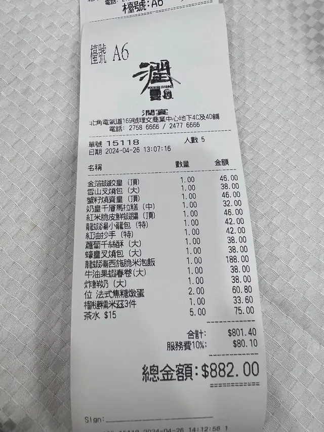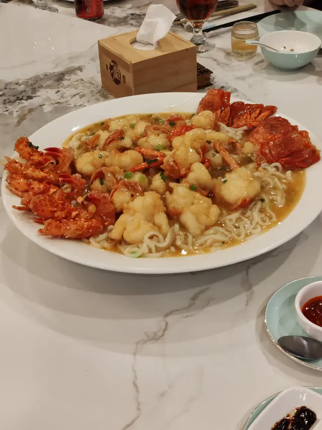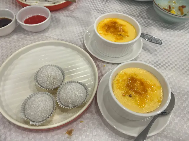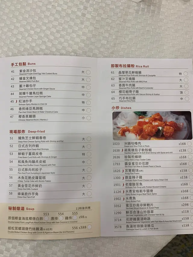 炮台山開咗間中菜廳,今日同同事走過去試一試,沒預訂,等咗15分鐘枱。5個人消費$880,唔算好便宜!酒樓新開,所以環境望落去唔錯,多服務人員。以下純屬個人同同事試完之後感覺!贊之處- 枱同枱距離都ok,坐得舒服- 上菜快夠熱- 紅米脆皮蝦腸 好味- 糯米糍 好吃非常之差- 龍蝦湯西施脆米泡飯 完全沒有龍蝦🦞味- 龍蝦湯小籠包 皮厚且沒龍蝦味沒鮮味- 紅油抄手 皮太厚太咸- 蝦餃皇 皮太厚- 炸鮮奶 奶是老的- 焦糖燉蛋淡到沒焦糖- 水壺唔夠干淨非常之唔建議試第二次查看更多